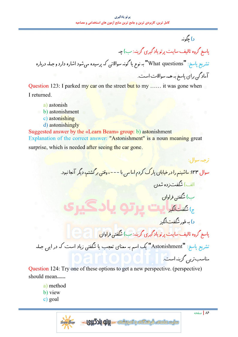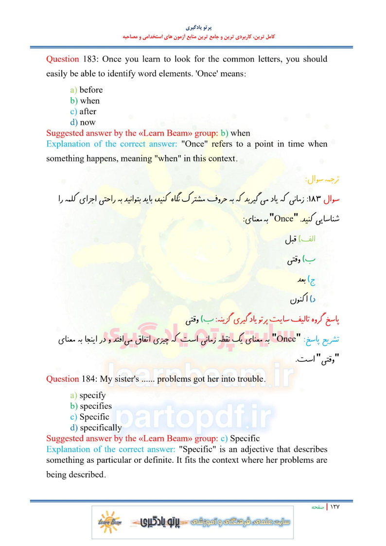- تست زبان انگلیسی (260 تست در 185 صفحه) با ترجمه فارسی سوال به سوال و گزینه ها
