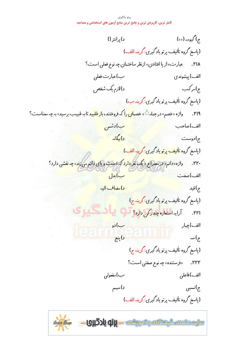 سایت علمی، آموزشی و فرهنگی پرتو یادگیری سایت مجموعه منابع آمادگی برای آزمونهای استخدامی