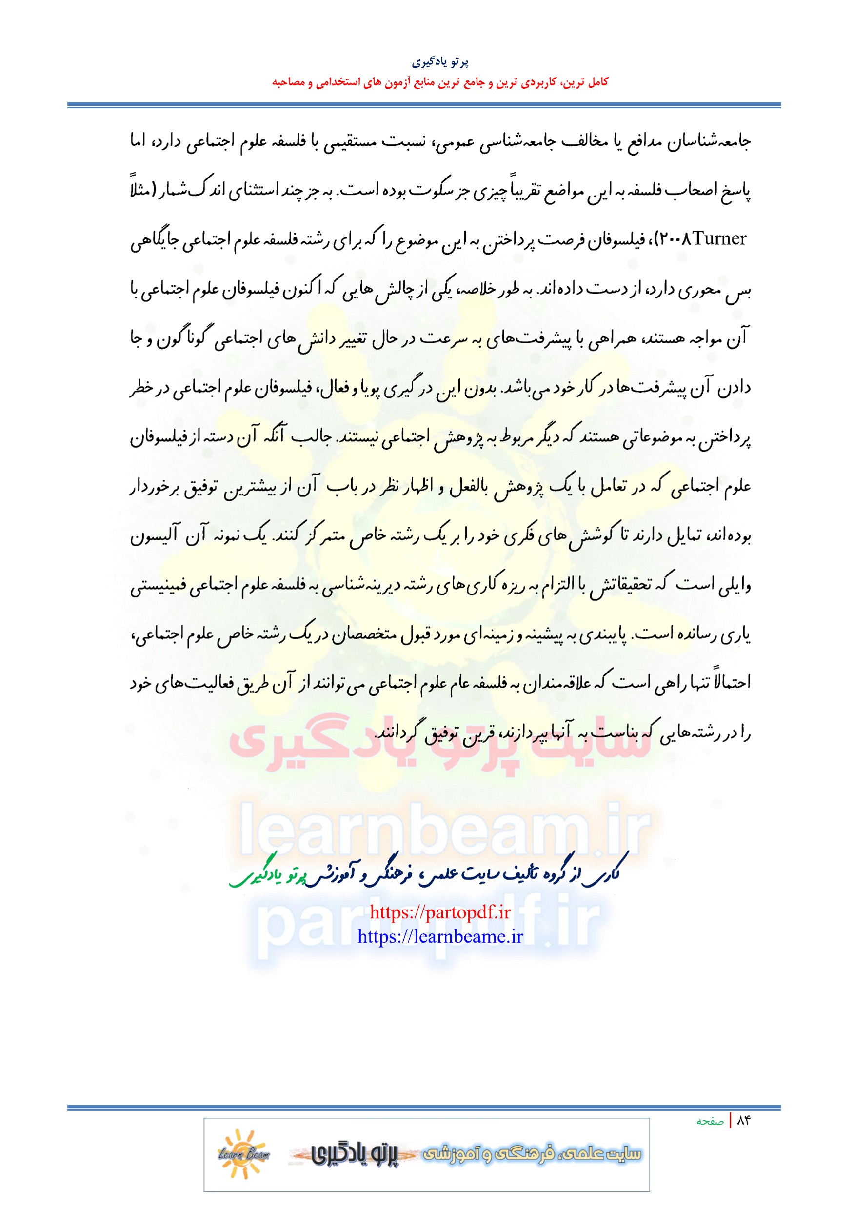 جزوه خلاصه و چکیده کتاب مبانی علوم اجتماعی در 84 صفحه در قالب فایل pdf. جزوه خلاصه کتاب مبانی علوم اجتماعی / نکات طلایی کتاب مبانی علوم اجتماعی / چکیده کتاب مبانی علوم اجتماعی مجموعه ای کامل برای مطالعه و موفقیت در آزمون های استخدامی است. جزوه خلاصه و چکیده از نکات کلیدی و طلایی کتاب مبانی علوم اجتماعی در قالب فایل پی دی اف می تواند مناسب ترین انتخاب برای داوطلبین عزیز در جهت تحکیم اطلاعات ذهنی و جمع بندی مطالب باشد. جزوه خلاصه کتاب مبانی علوم اجتماعی انسجام ذهنی و آمادگی ذهنی فراگیران برای آزمون استخدامی آموزش و پرورش را در پی دارد. این منبع متناسب با سرفصل های اعلامی دفترچه آزمون استخدامی تدوین و تالیف گردیده است.