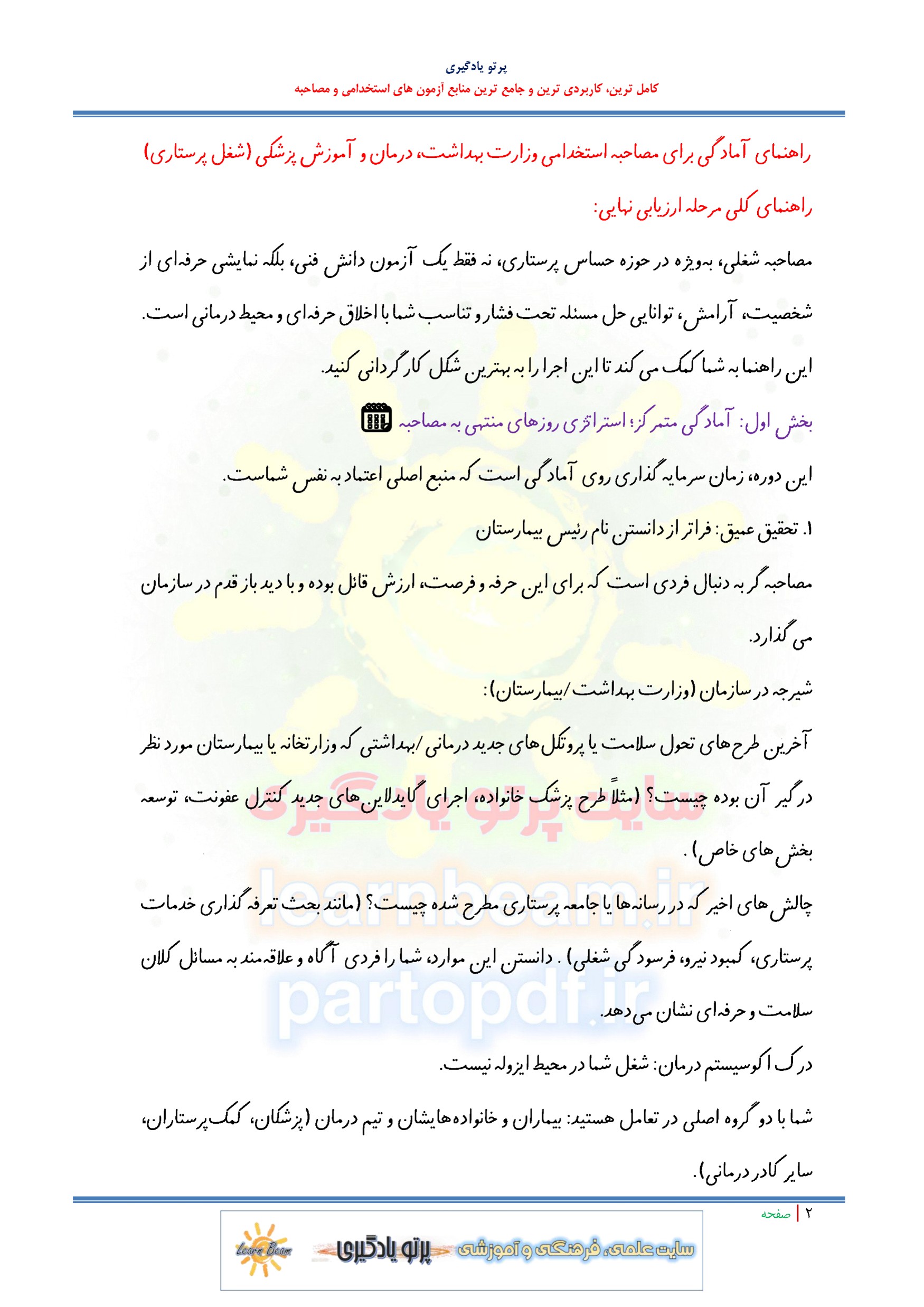 جزوه سوالات مصاحبه استخدامی پرستاری استخدامی وزارت بهداشت درمان و آموزش پزشکی