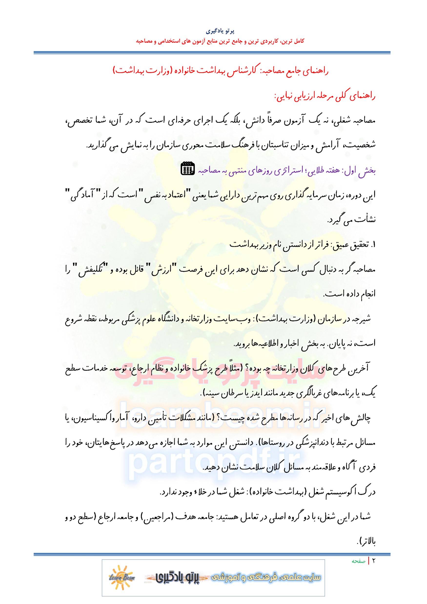 جزوه سوالات مصاحبه استخدامی کارشناس بهداشت خانواده استخدامی وزارت بهداشت درمان و آموزش پزشکی