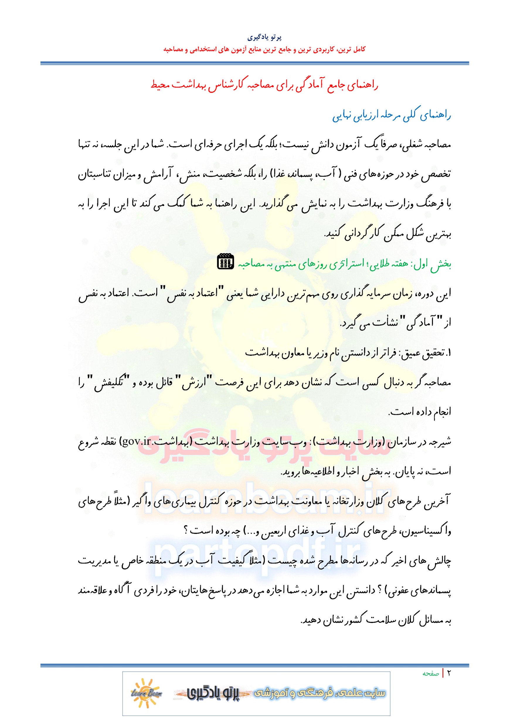 جزوه سوالات مصاحبه استخدامی کارشناس بهداشت محیط استخدامی وزارت بهداشت درمان و آموزش پزشکی