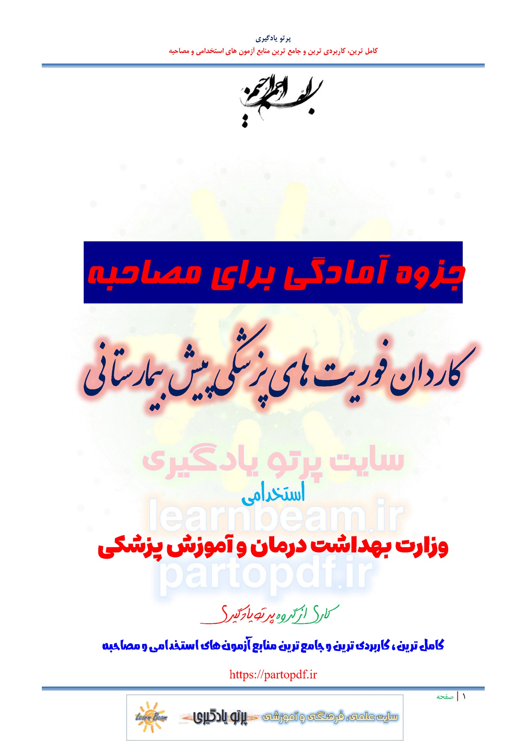 جزوه سوالات مصاحبه استخدامی استخدام کاردان فوریت های پزشکی پیش بیمارستانی وزارت بهداشت درمان و آموزش پزشکی
