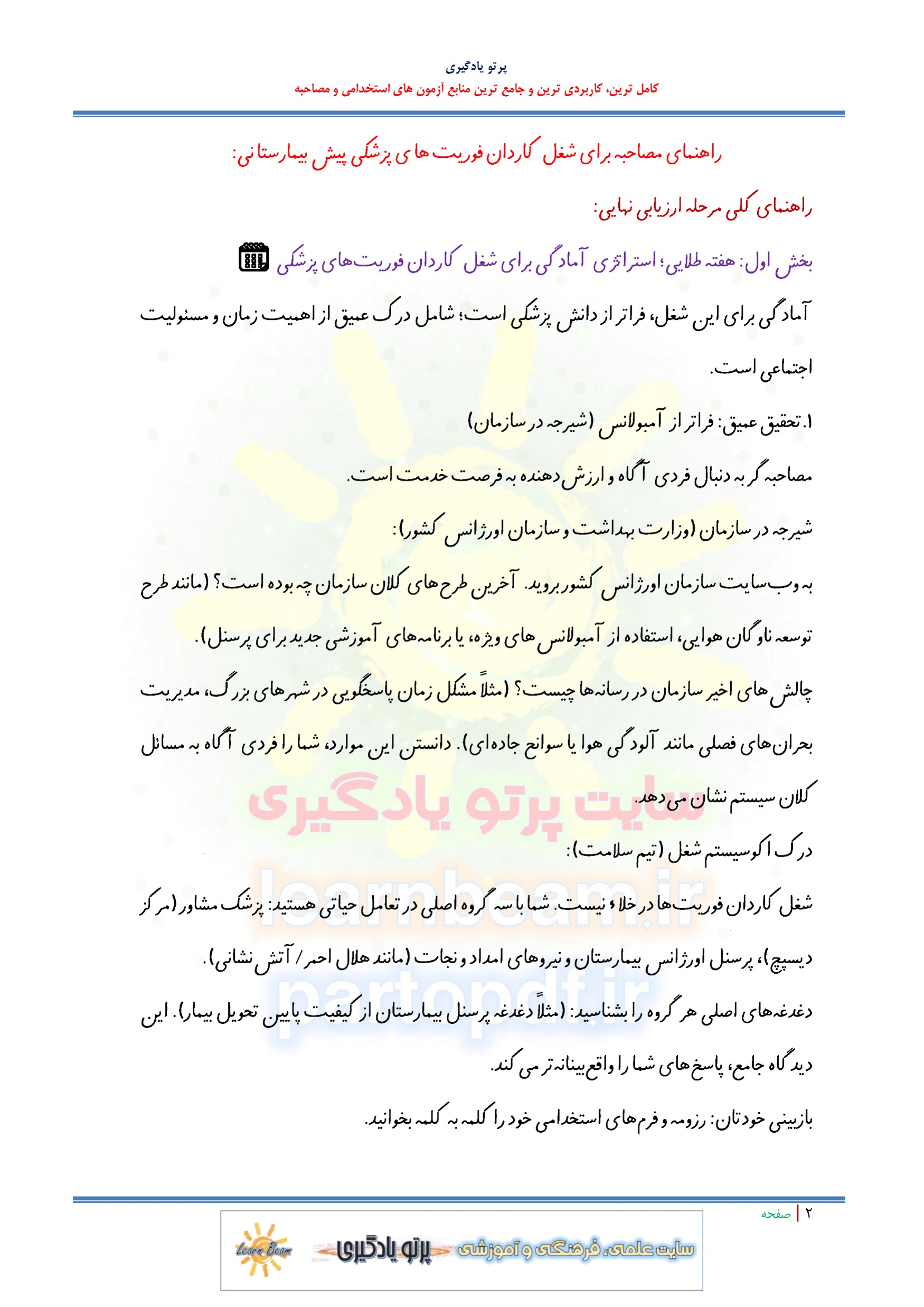 مجموعه سوالات آمادگی برای مصاحبه استخدام کاردان فوریت های پزشکی پیش بیمارستانی