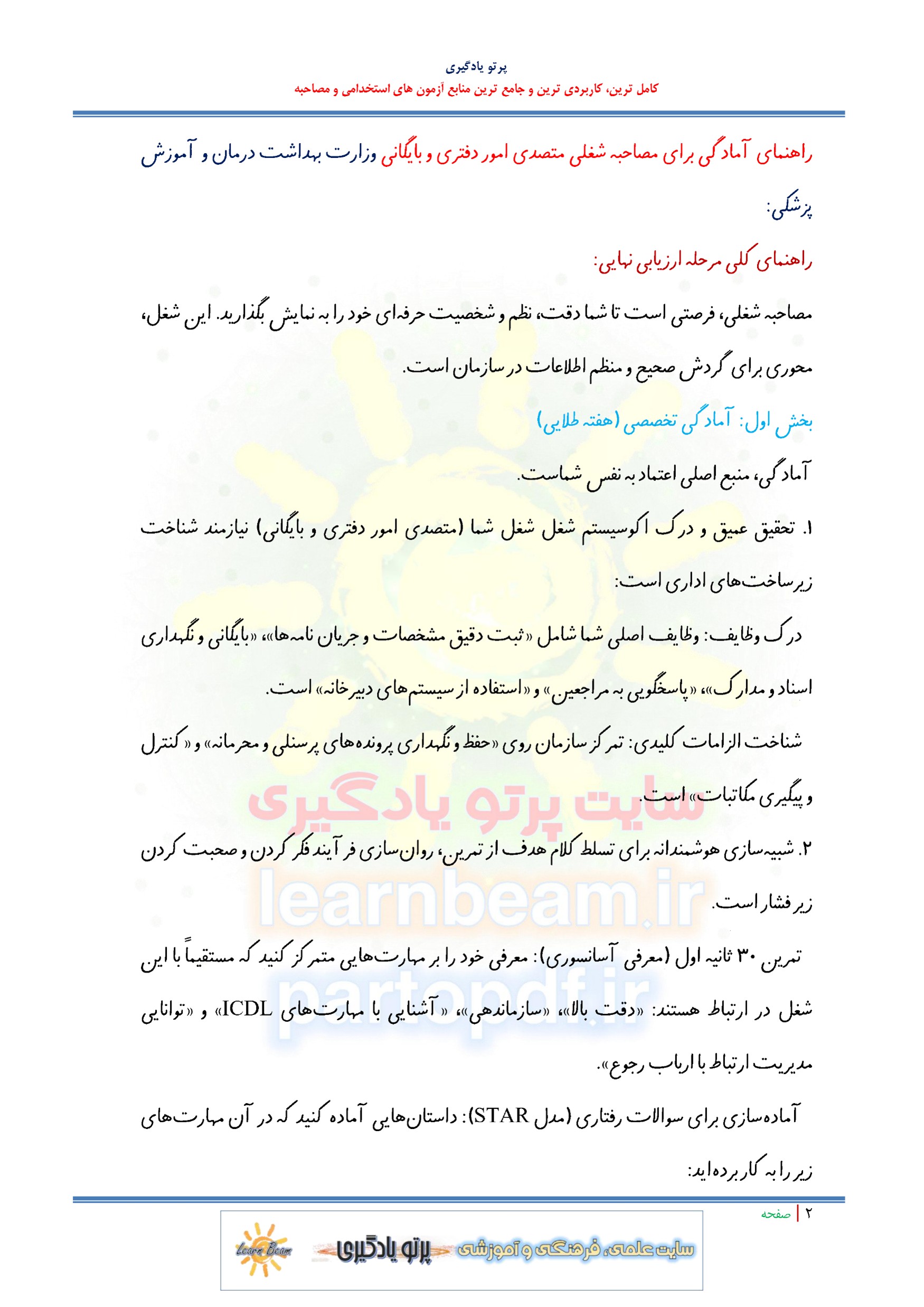 جزوه سوالات مصاحبه استخدامی متصدی امور دفتری و بایگانی استخدامی وزارت بهداشت درمان و آموزش پزشکی