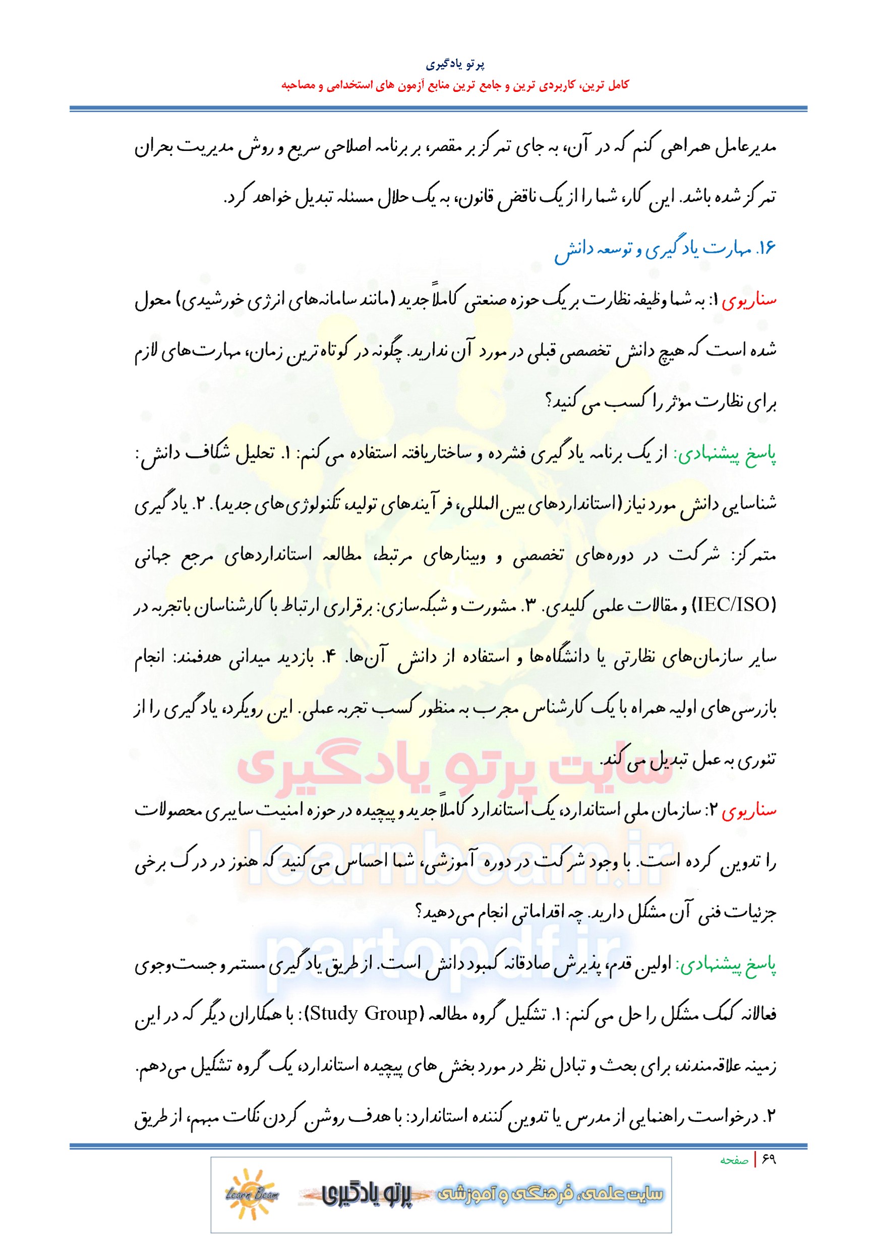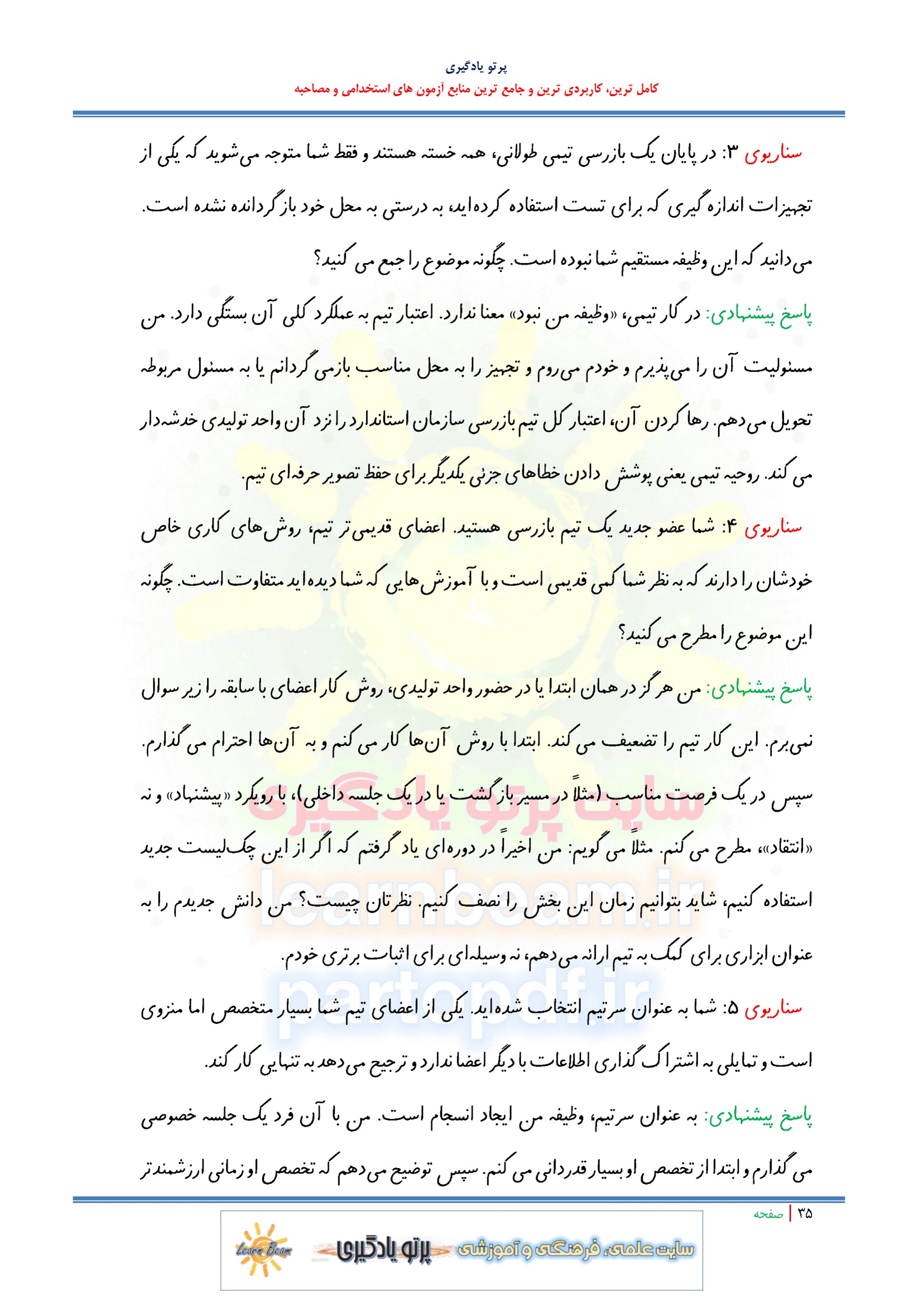 سوالات در قالب سناریو و مصاحبه شایسته محور و مباحث عمومی و تخصصی