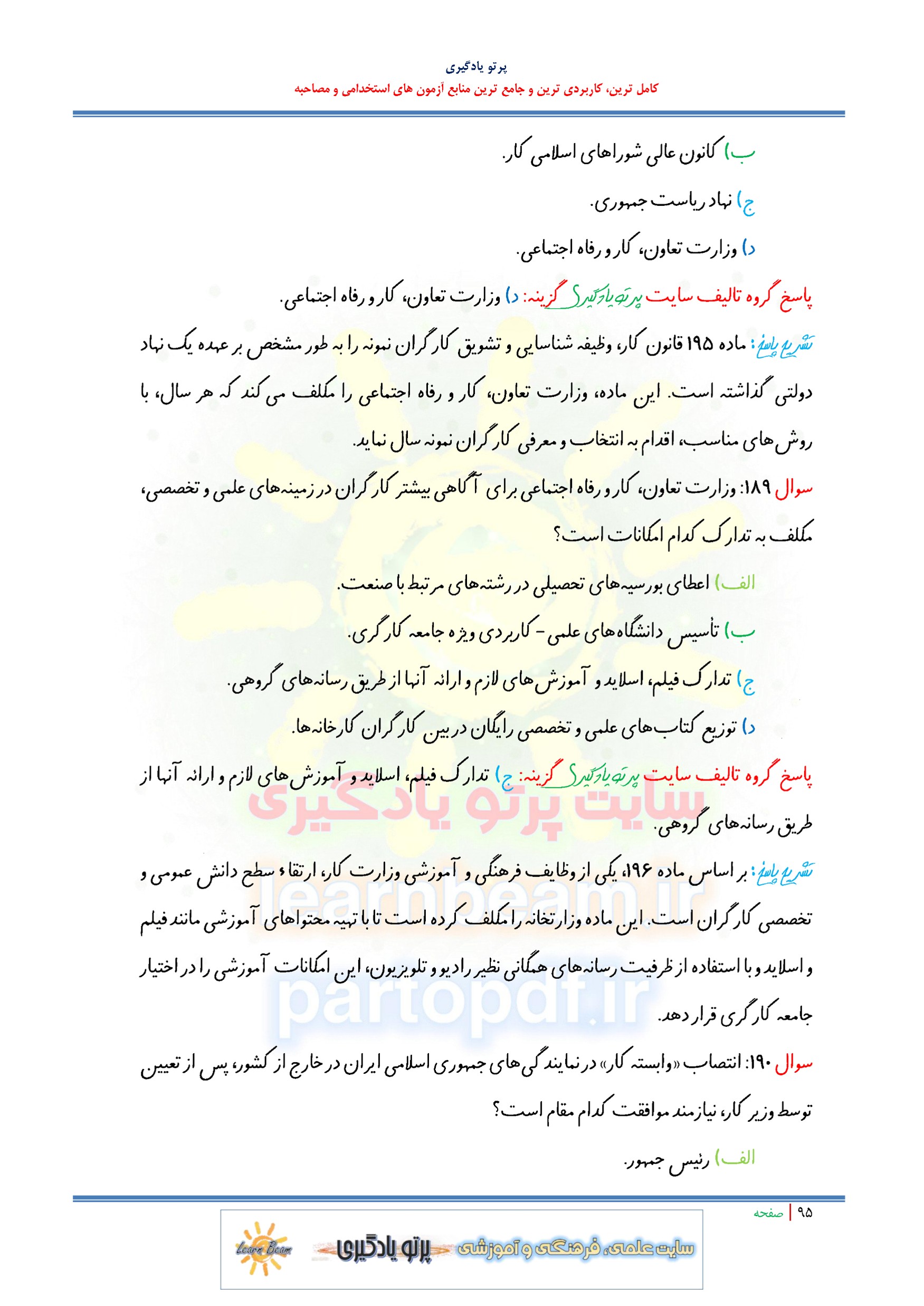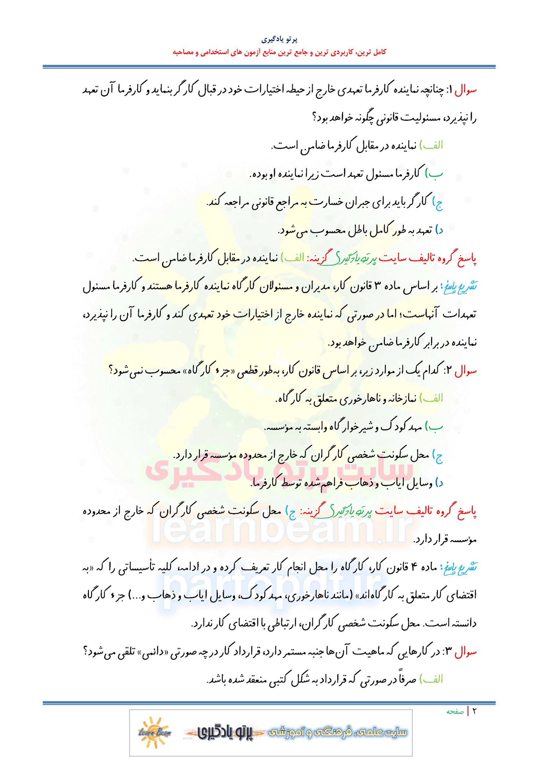 سوالات و تست قانون کار با اصلاحات و الحاقات بعدی
