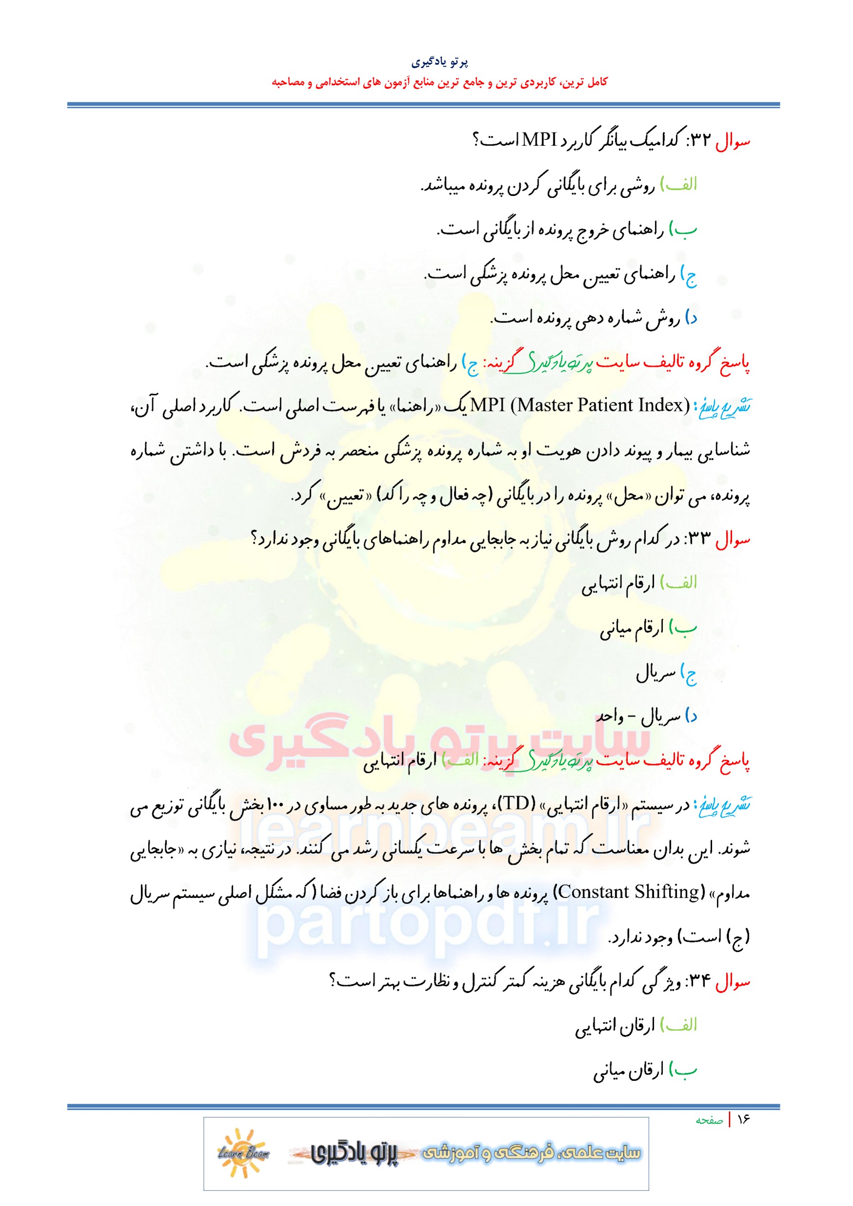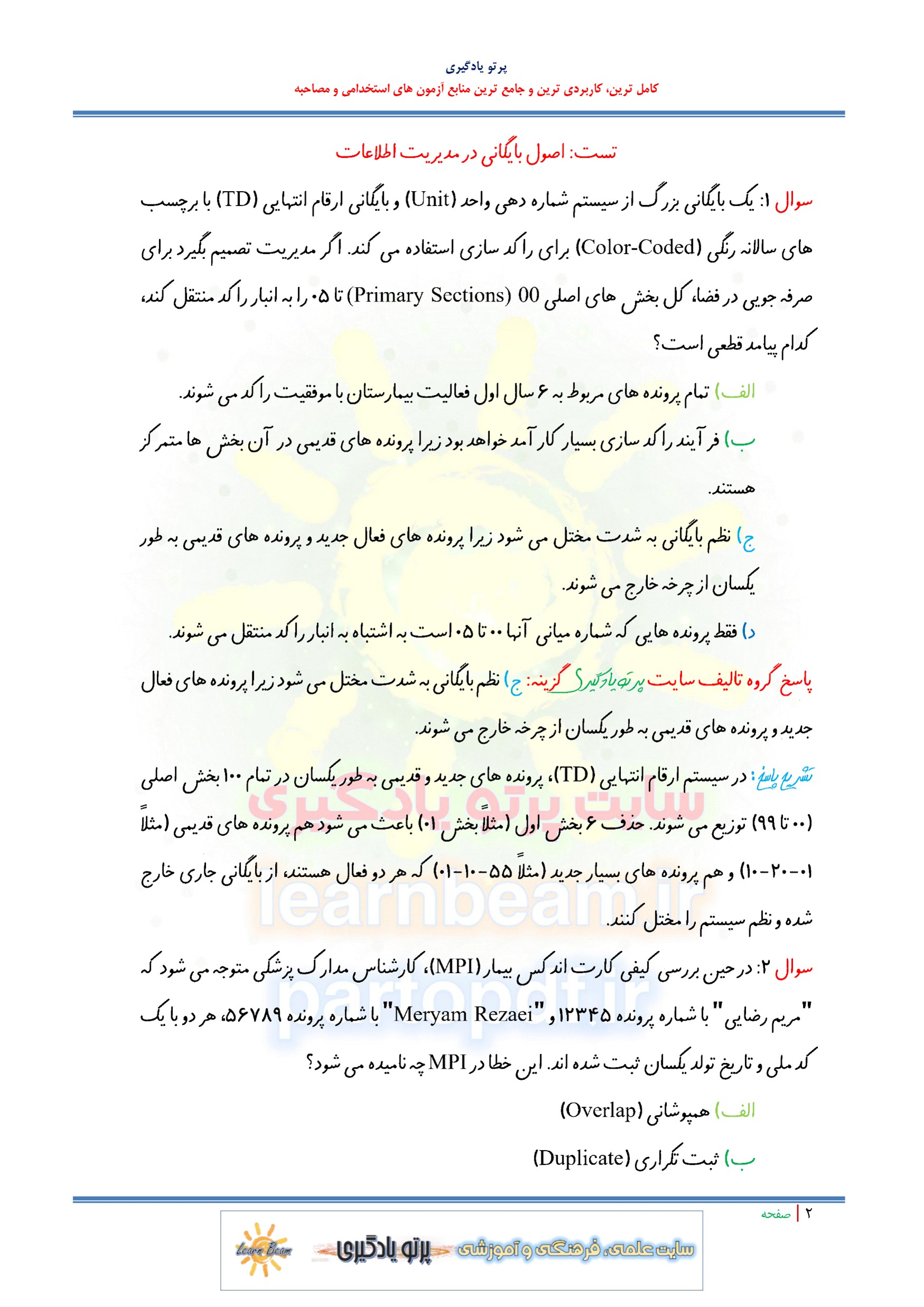 مجموعه سوالات و تست اصول بایگانی در مدیریت اطلاعات با پاسخ تشریحی