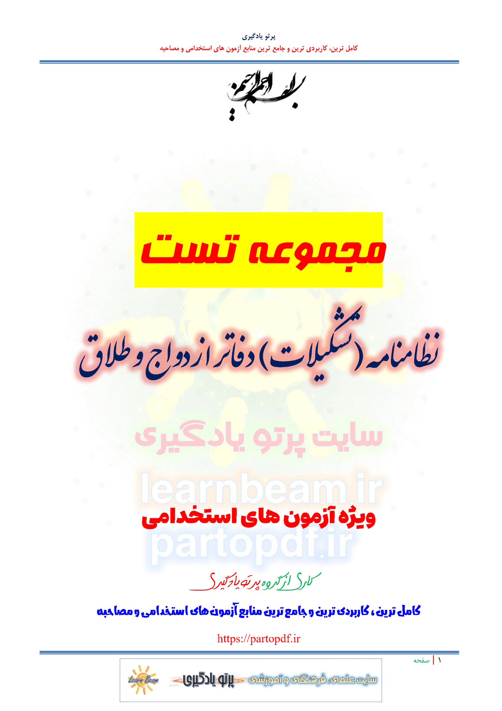 • سوالات و تست نظامنامه تشکیلات دفاتر ازدواج و طلاق: 81 تست در 45 صفحه در قالب فایل pdf