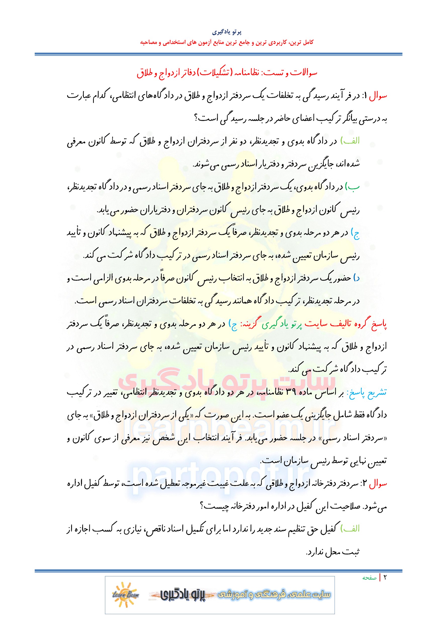 سوالات و تست نظامنامه (تشکیلات ) دفاتر ازدواج و طلاق