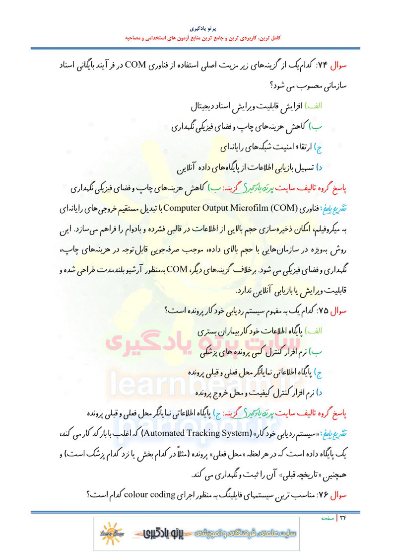 - تست اصول بایگانی در مدیریت اطلاعات (81 تست در 37 صفحه)