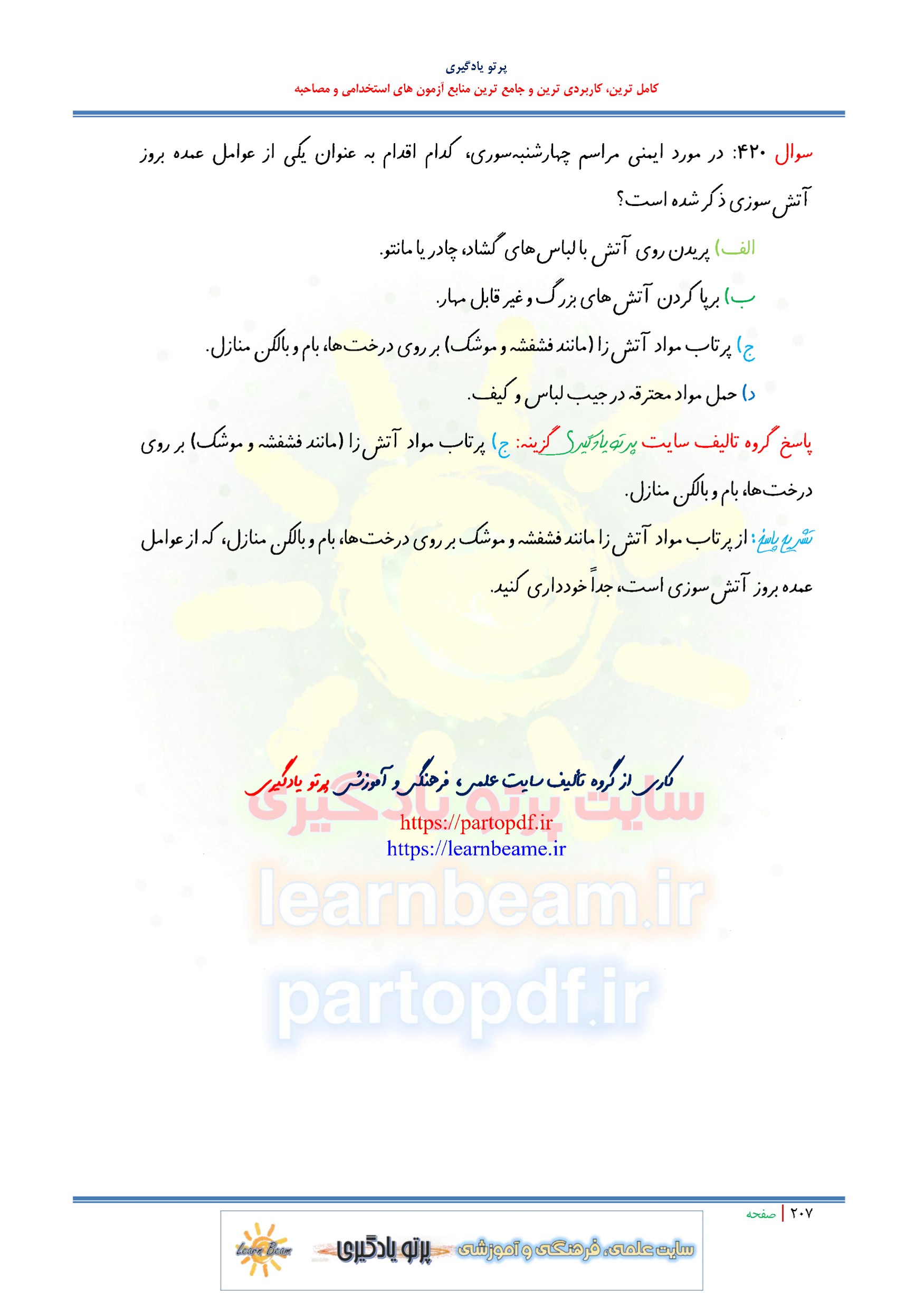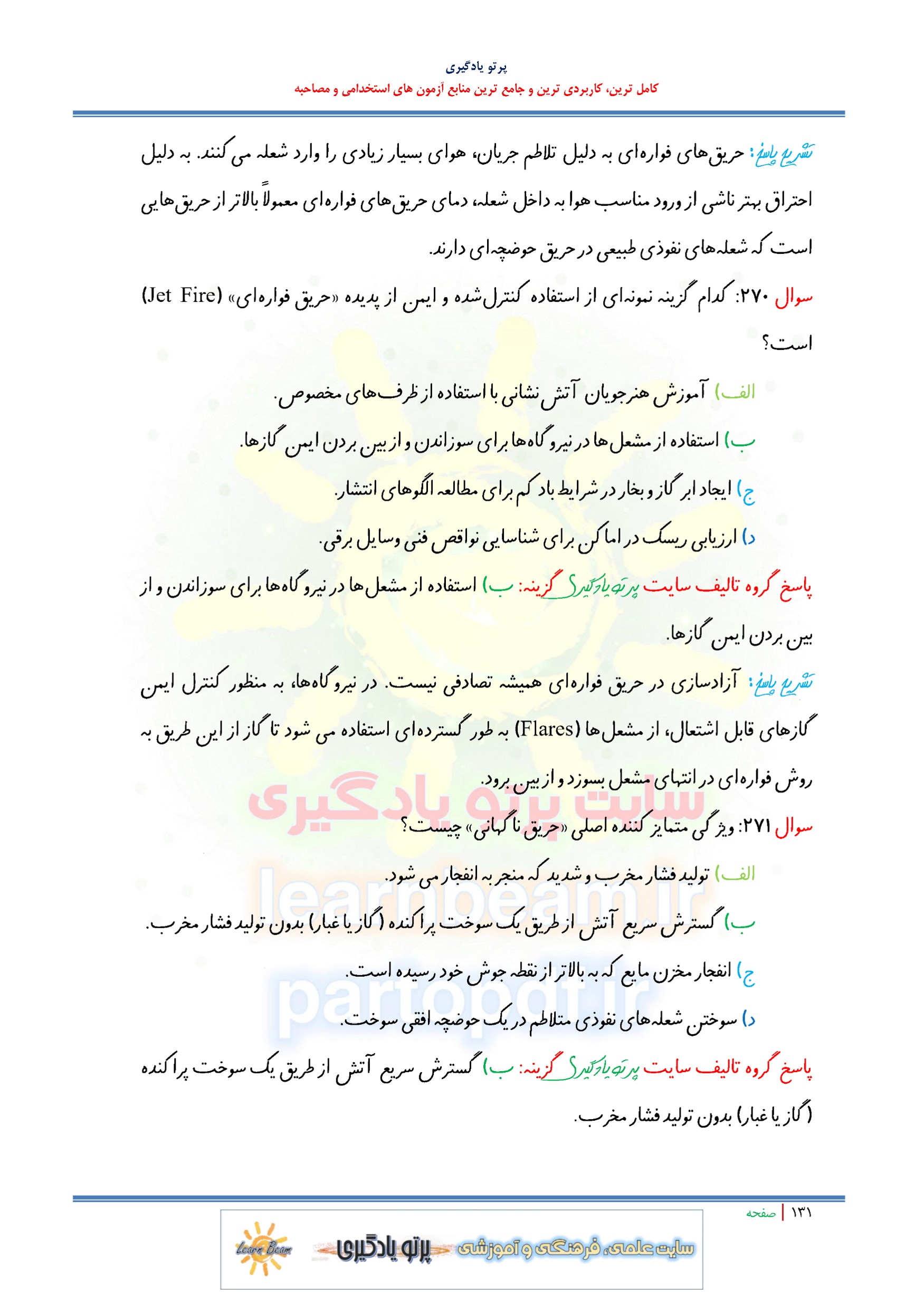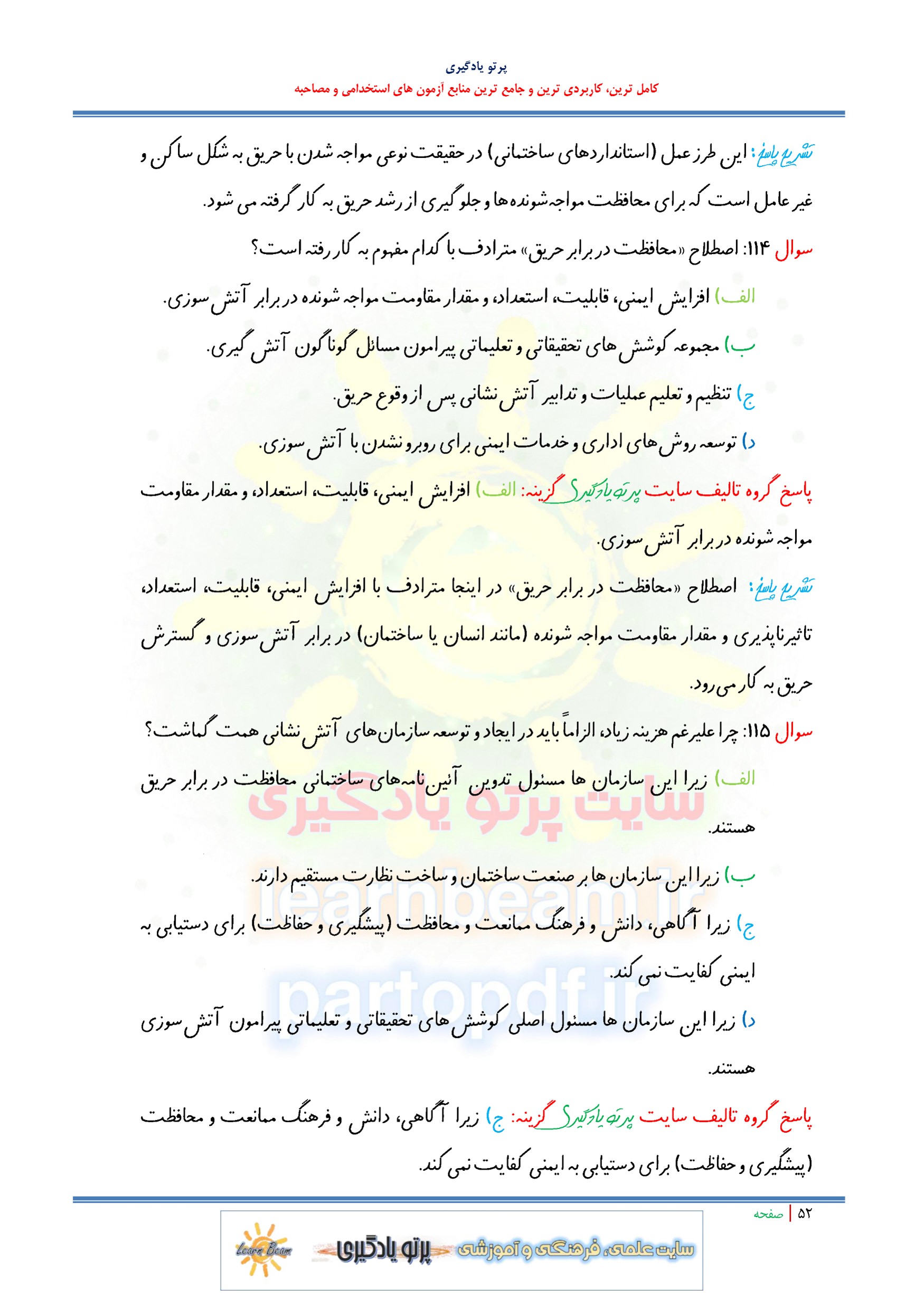 مجموعه سوالات و تست کتاب مروری بر مبانی ایمنی و آتش نشانی با پاسخ تشریحی