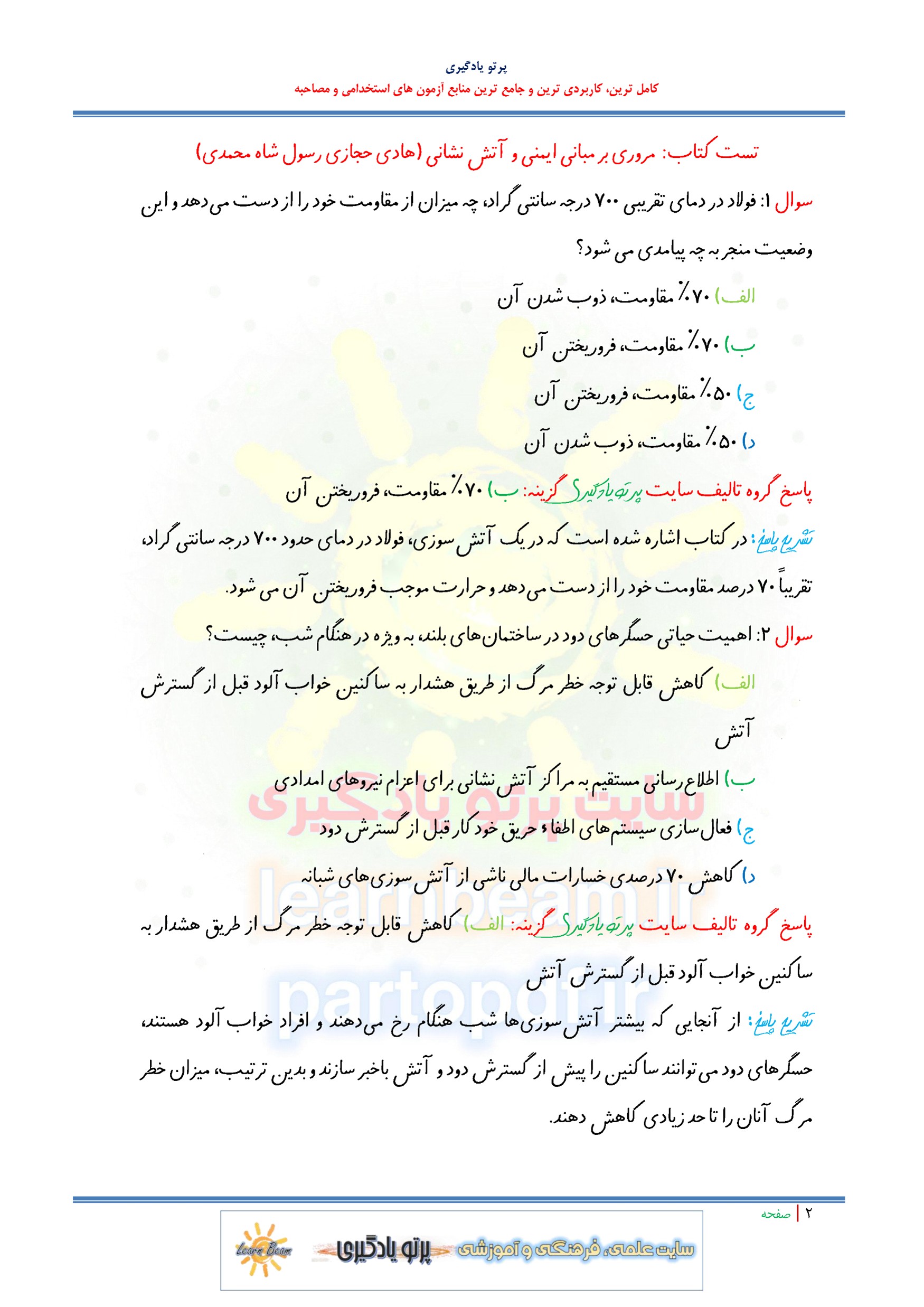سوالات و تست کتاب مروری بر مبانی ایمنی و آتش نشانی هادی حجازی و رسول شاه محمدی