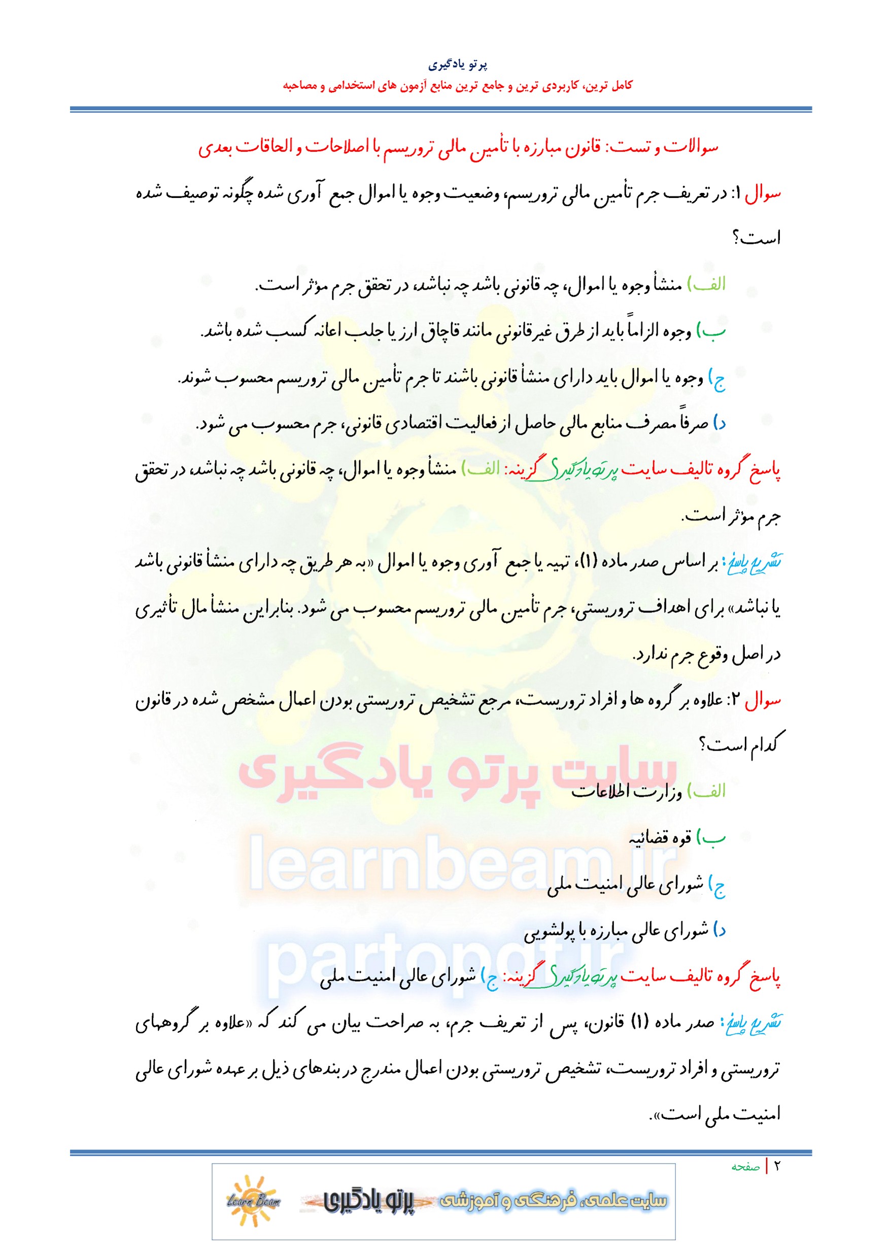سوالات و تست قانون مبارزه با تامین مالی تروریسم