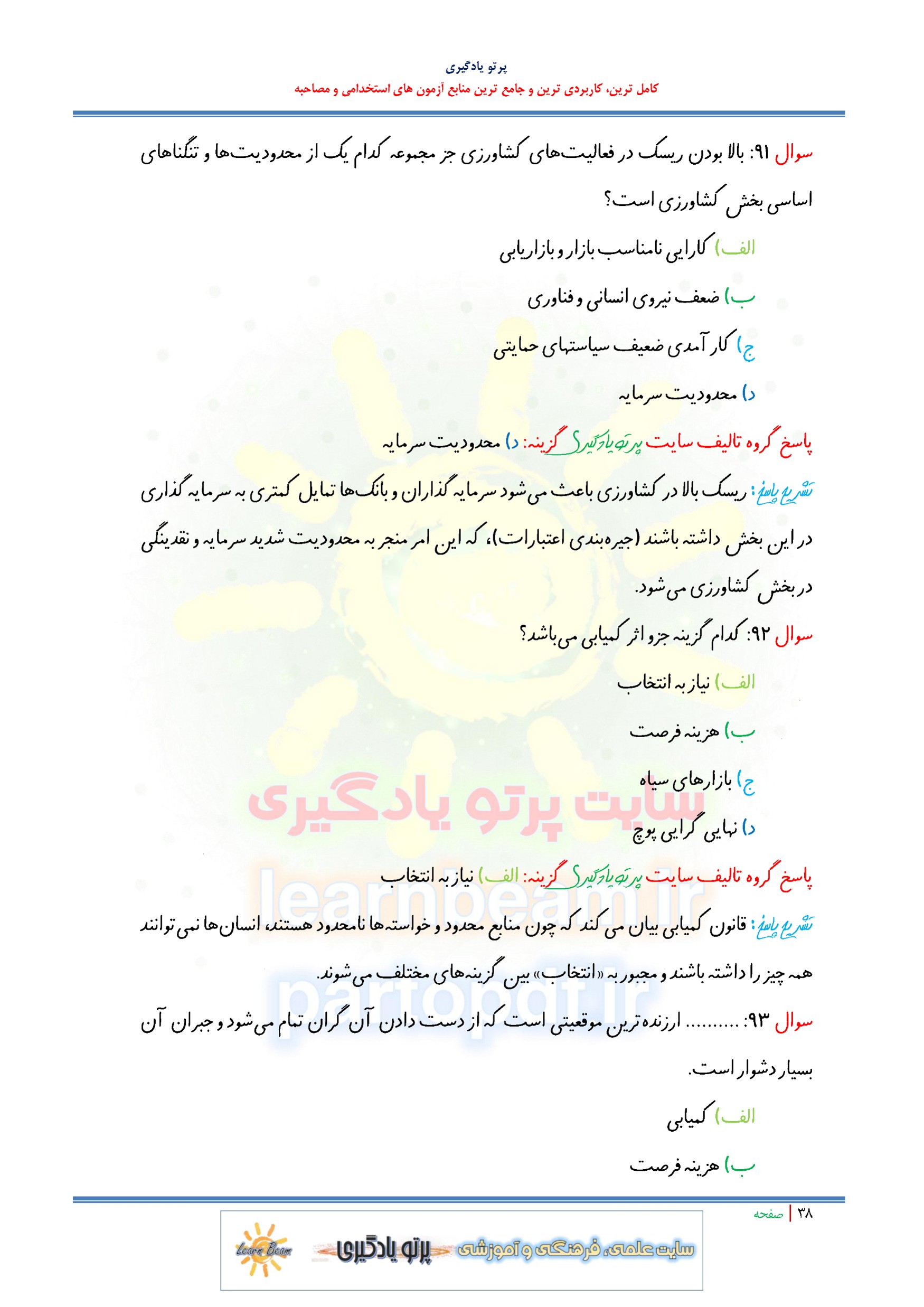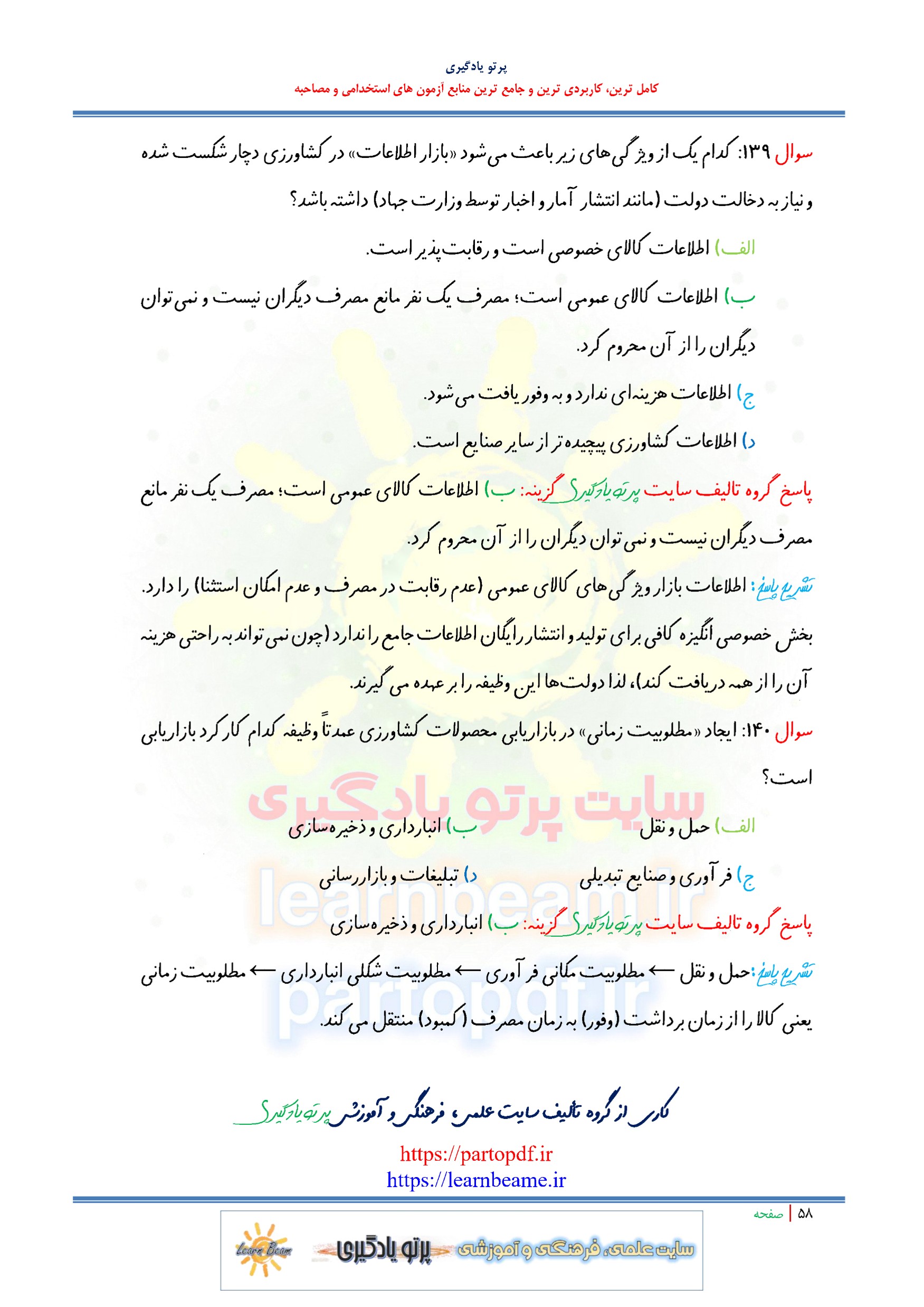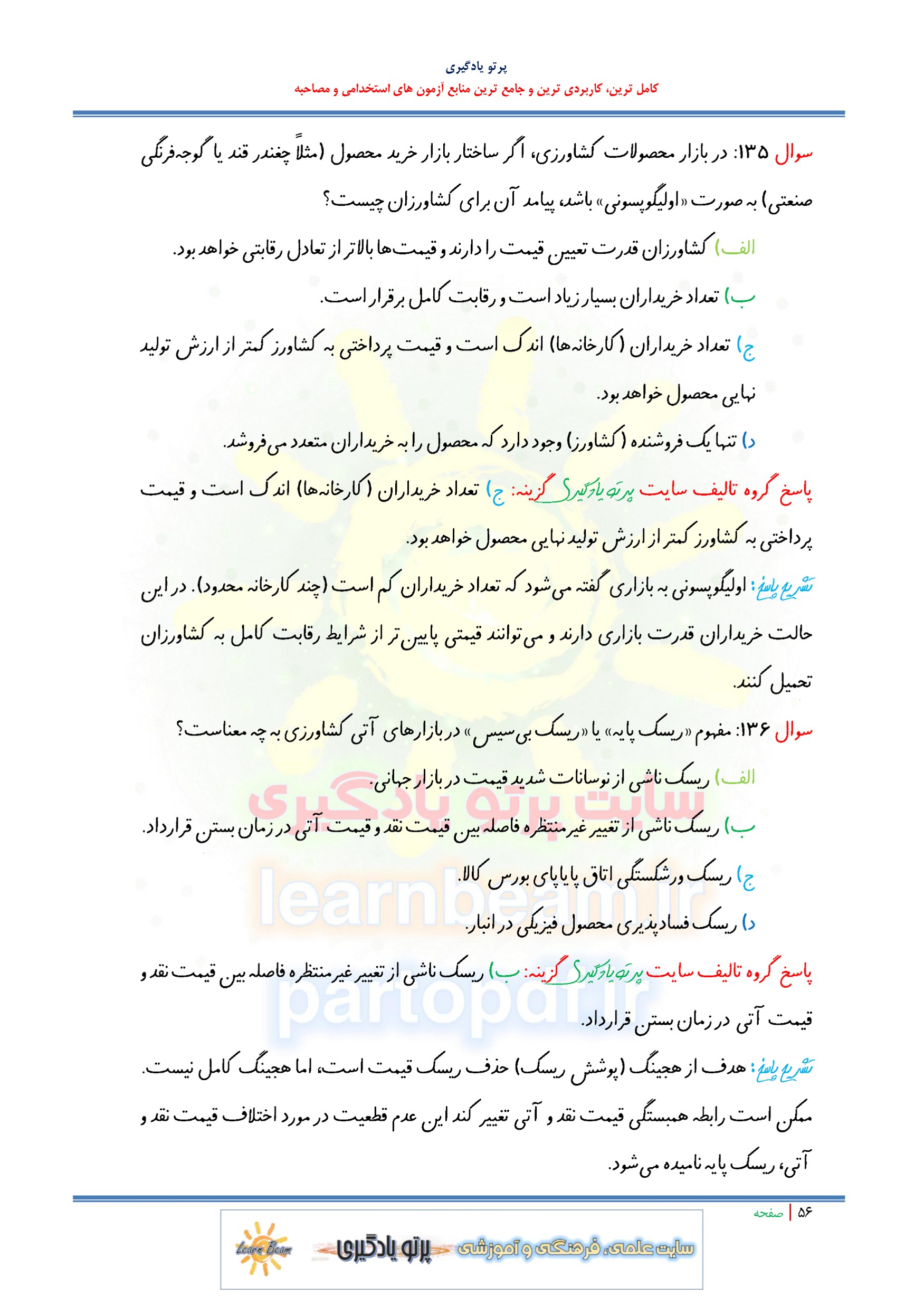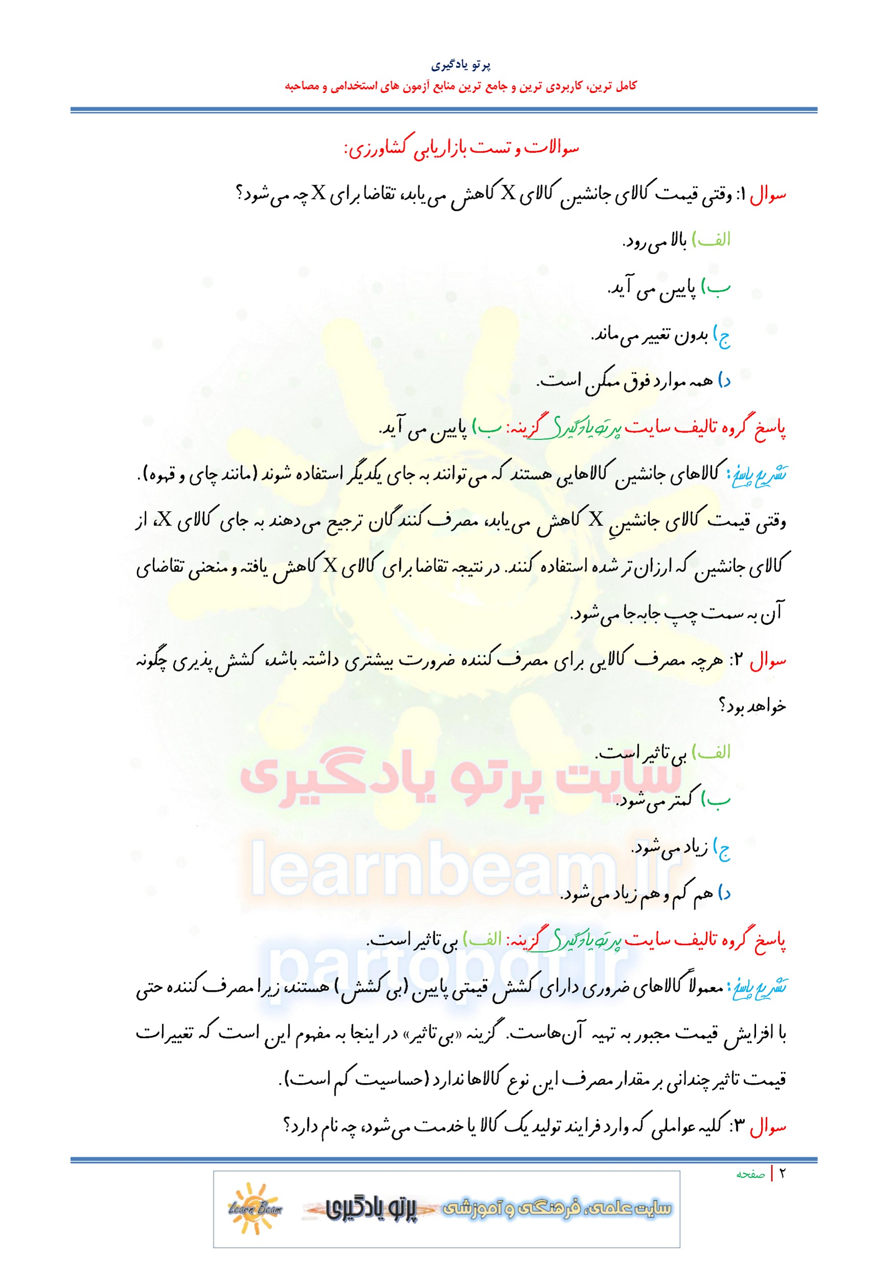 مجموعه سوالات و تست بازاریابی کشاورزی با پاسخ تشریحی