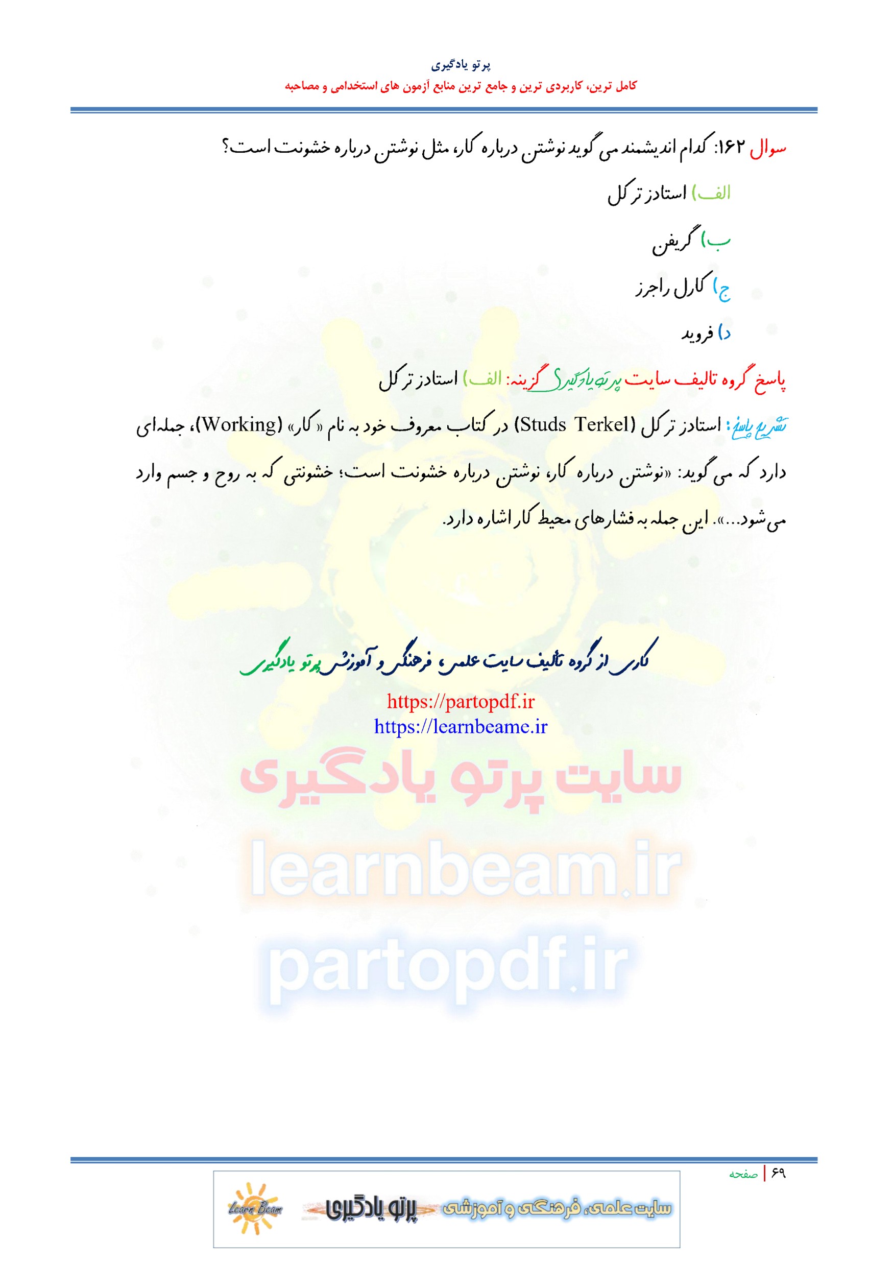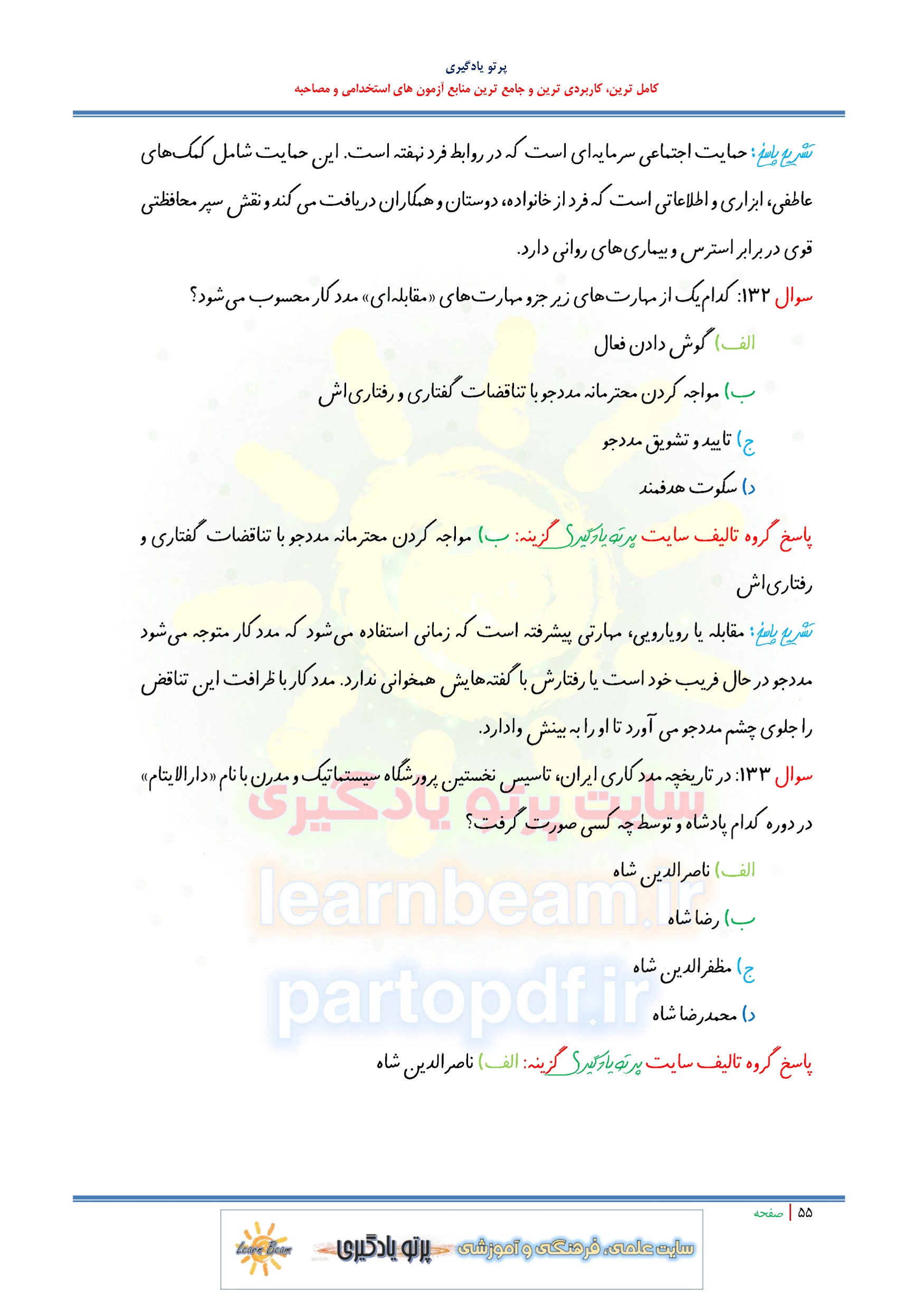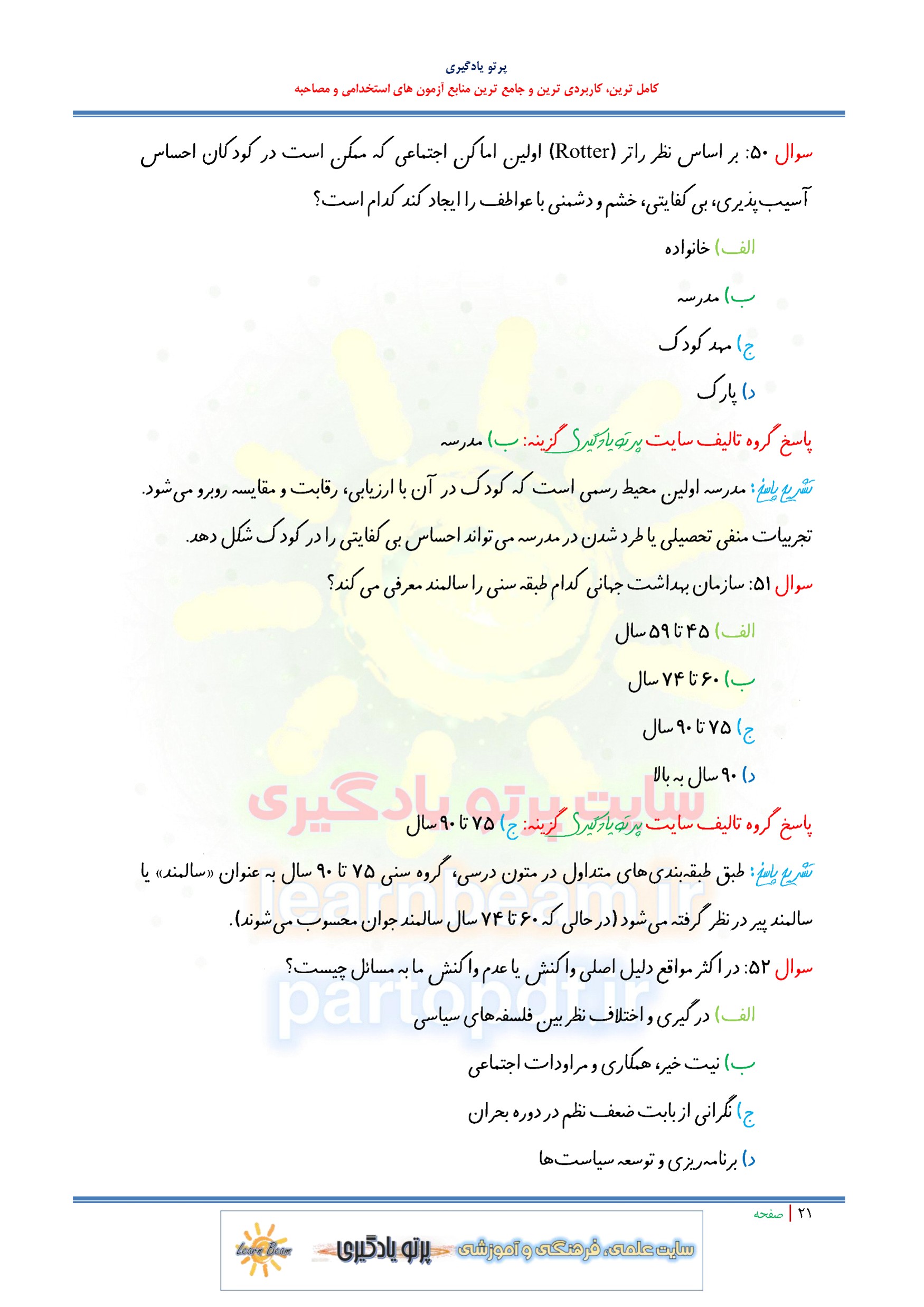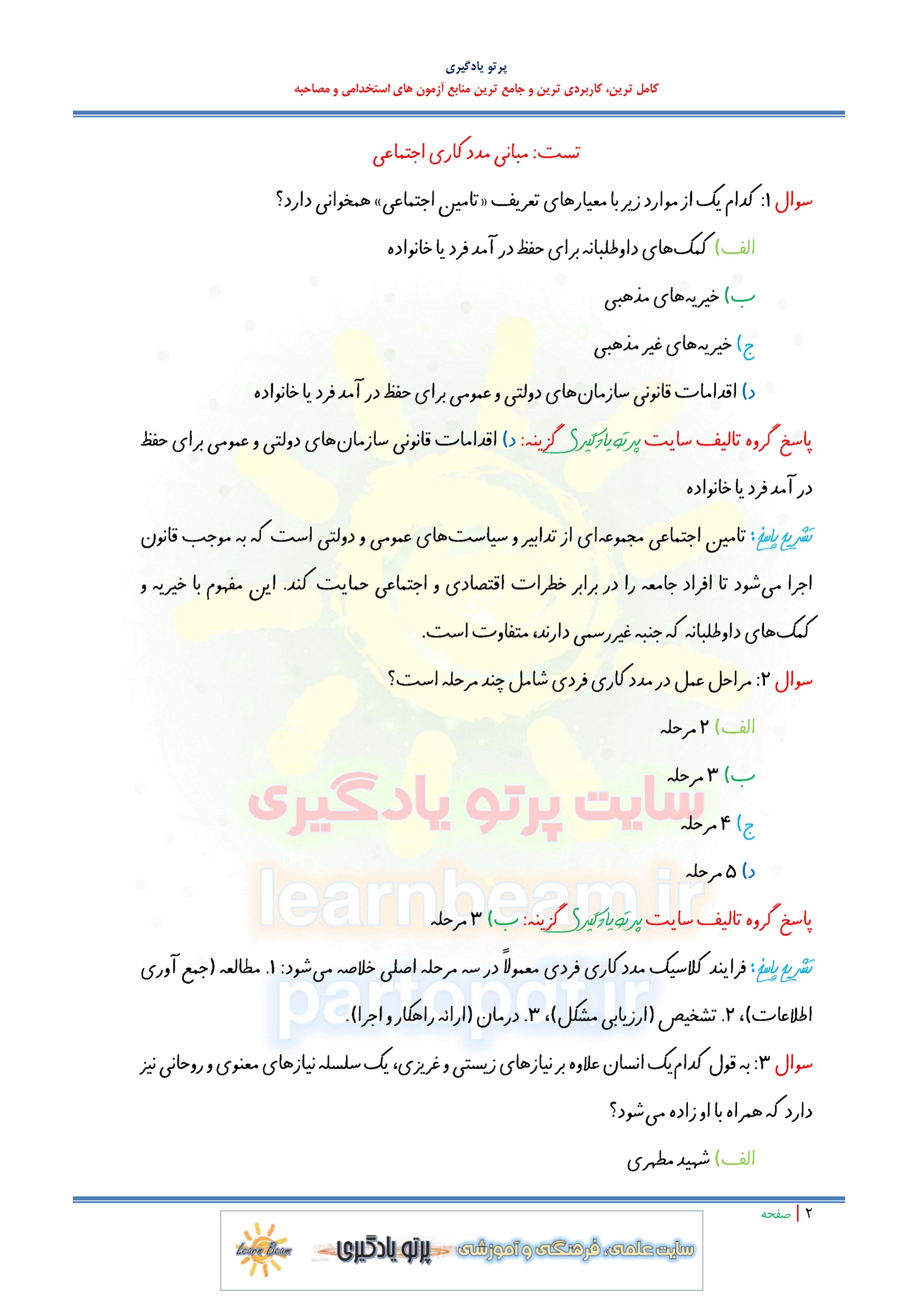 • سوالات و تست کتاب مبانی مددکاری اجتماعی: 162 تست در 69 صفحه در قالب فایل pdf