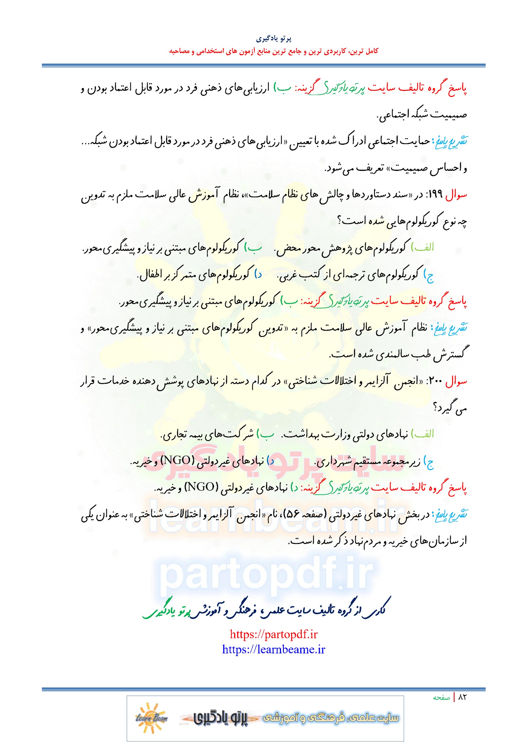 سوالات و تست سند ملی سالمندان کشور. سوالات تستی سند ملی سالمندان کشور شامل 200 سوال تستی در 82 صفحه با پاسخنامه تشریحی در قالب فایل pdf. مطابق با سرفصل های دفترچه آزمون های استخدامی. مجموعه سوالات تستی سند ملی سالمندان کشور بهترین منبع برای آمادگی آزمون های استخدامی می باشد. مجموعه سوالات و تست سند ملی سالمندان کشور مطالب خوانده شده داوطلبین آزمون استخدامی را نظم بخشیده و منسجم می سازد. مجموعه سوالات و تست سند ملی سالمندان کشور ویژه آزمون های استخدامی مرور سریع داوطلب را سبب می شود و آگاهی های وی را نظم بخشیده و یک آمادگی و شبیه سازی را برای جلسه آزمون به همراه دارد. مطالعه پک مجموعه سوالات و تست سند ملی سالمندان کشور برای داوطلبین آزمون های استخدامی پیشنهاد می شود.