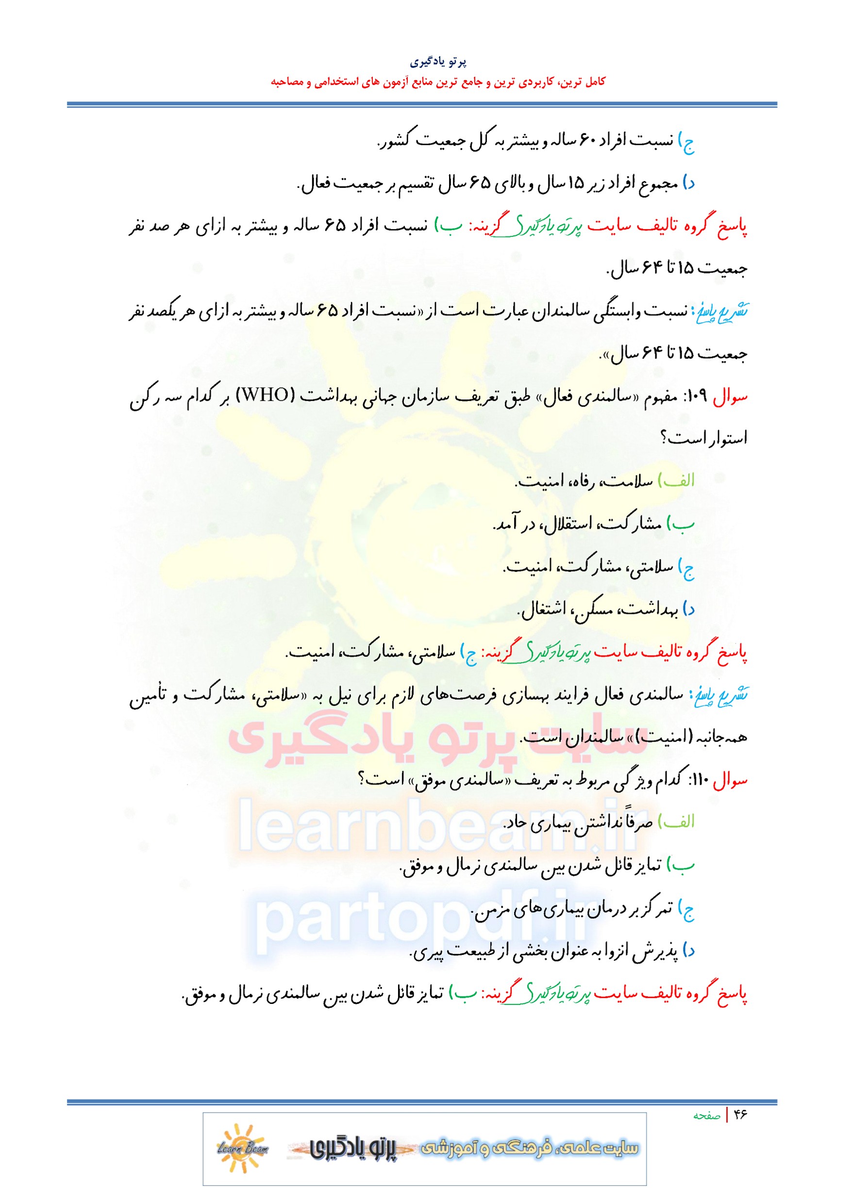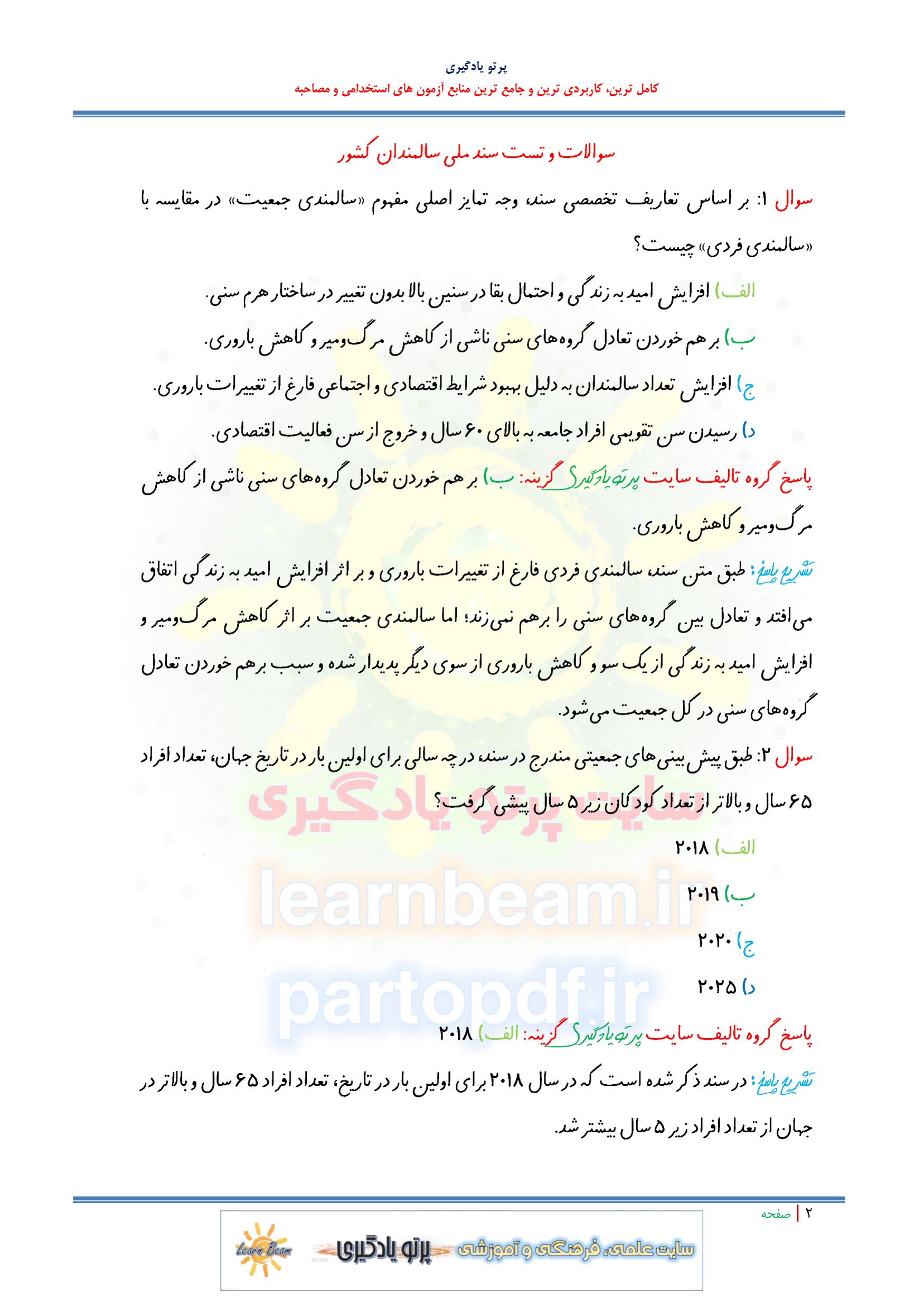 مجموعه سوالات و تست سند ملی سالمندان کشور با پاسخنامه تشریحی