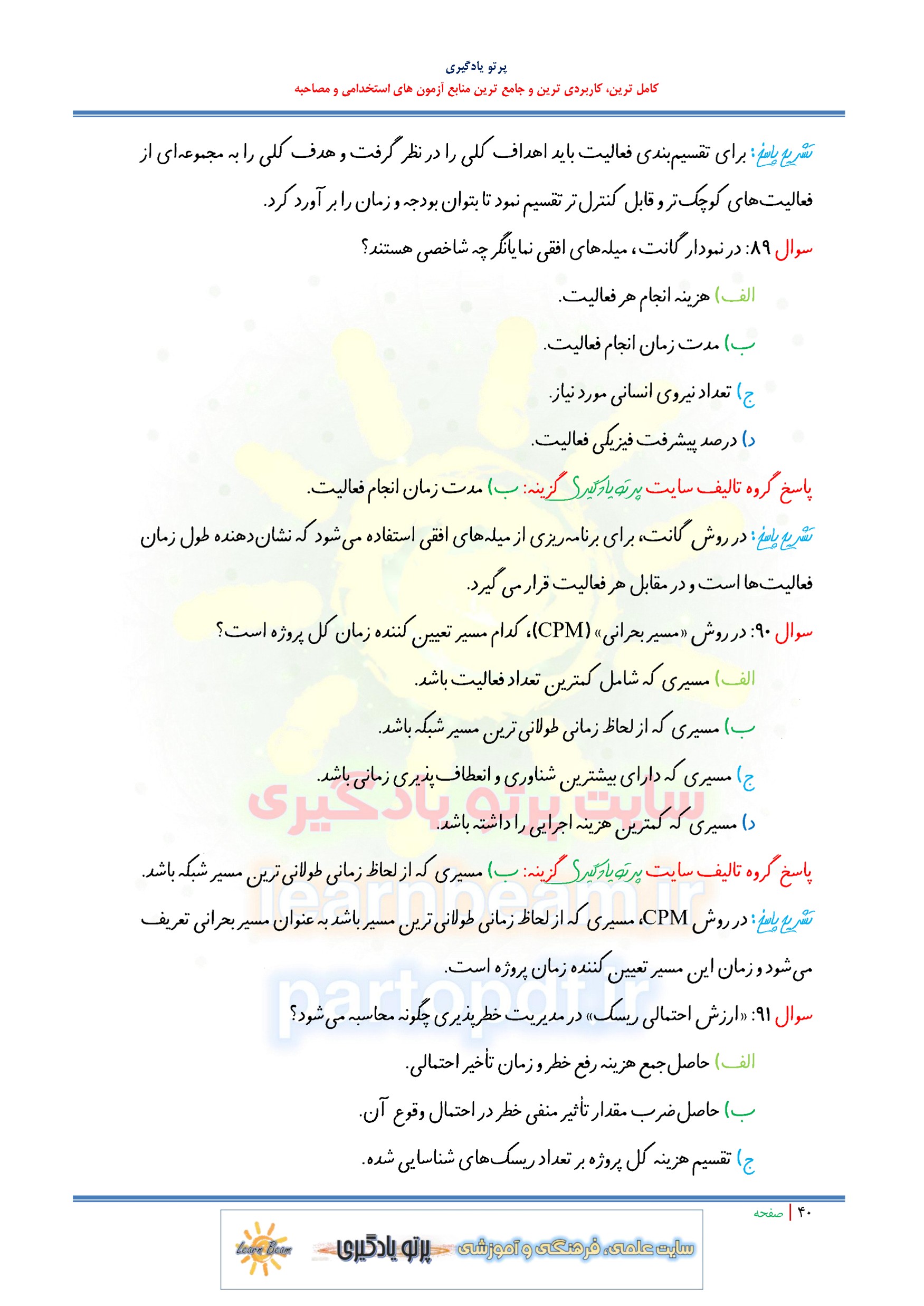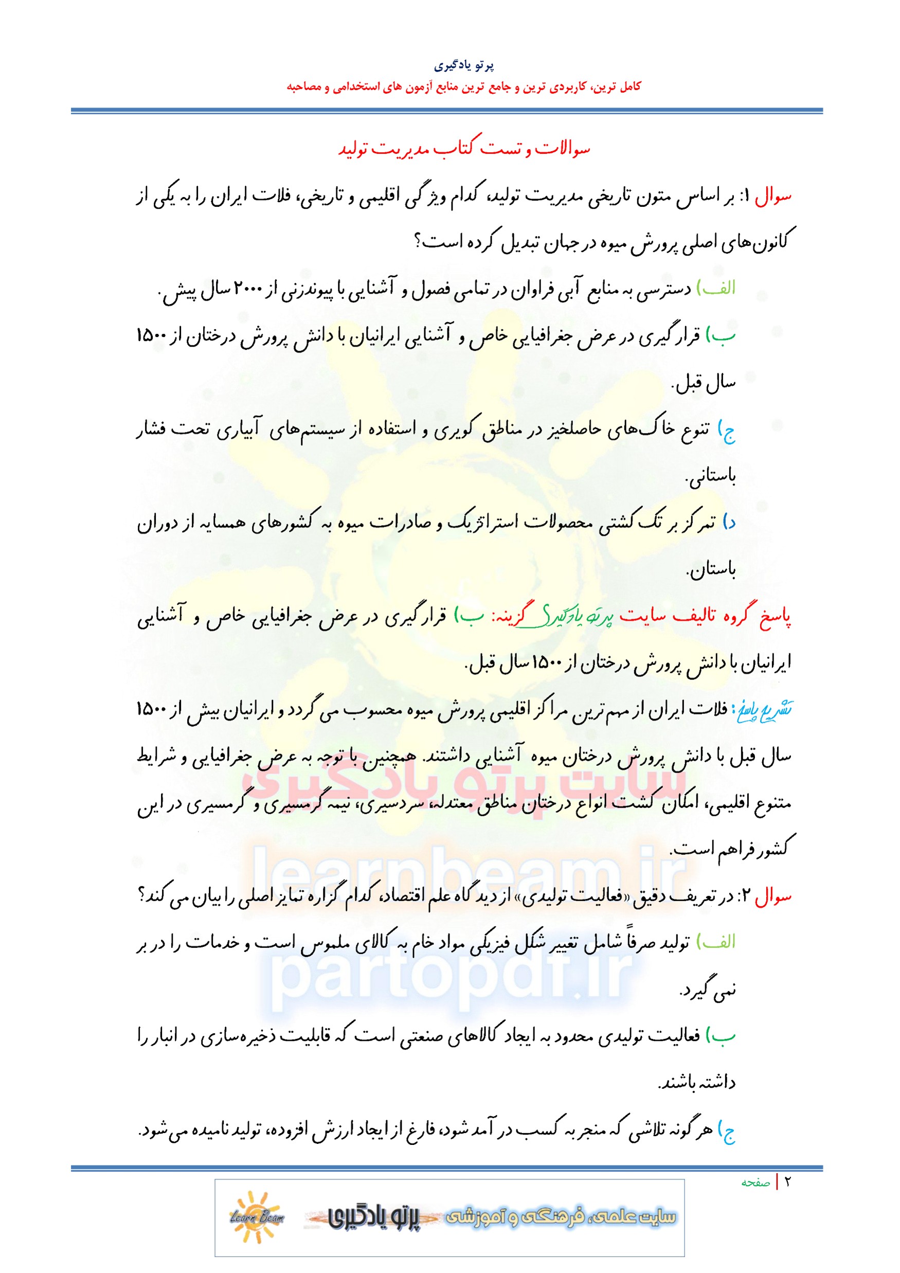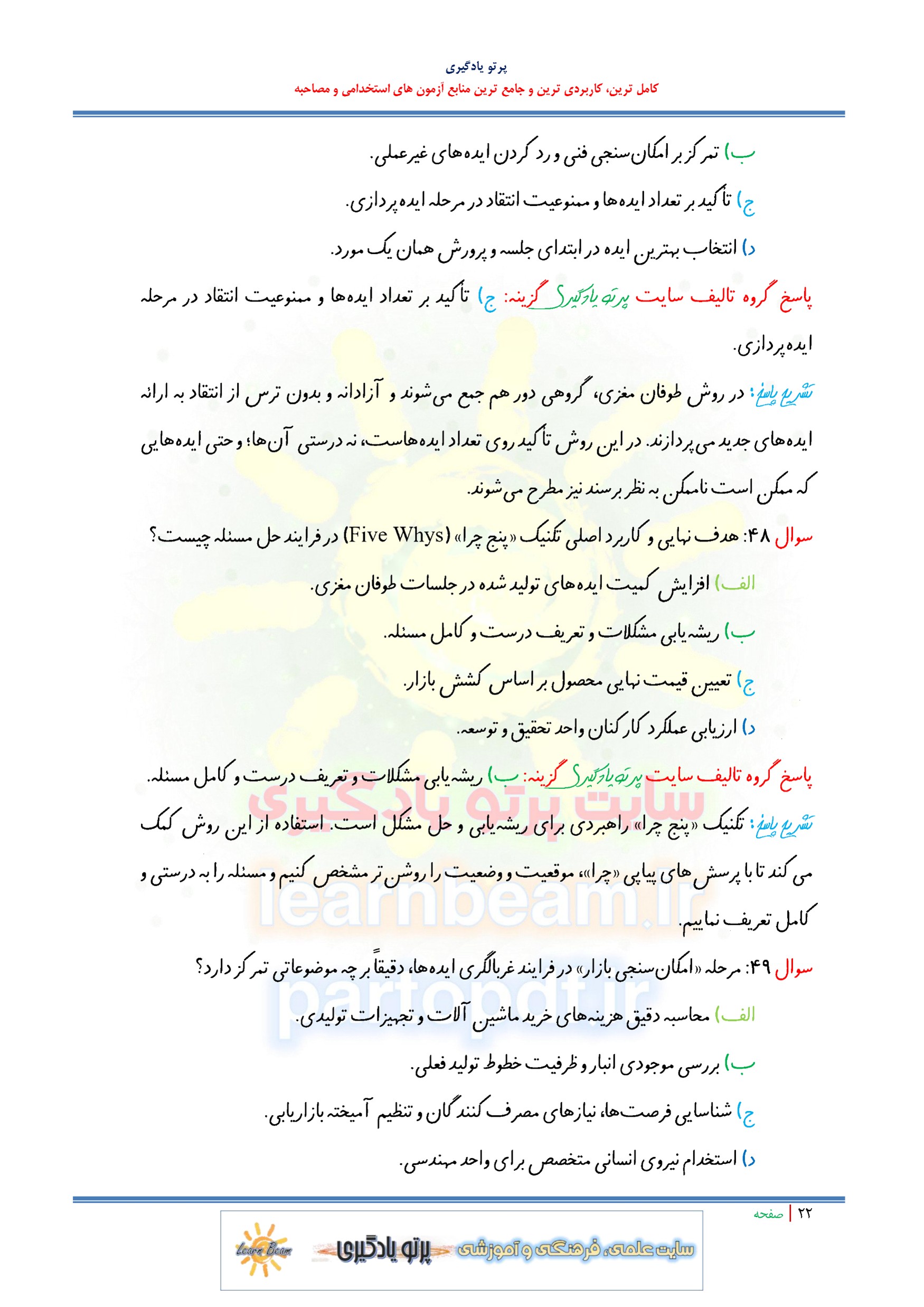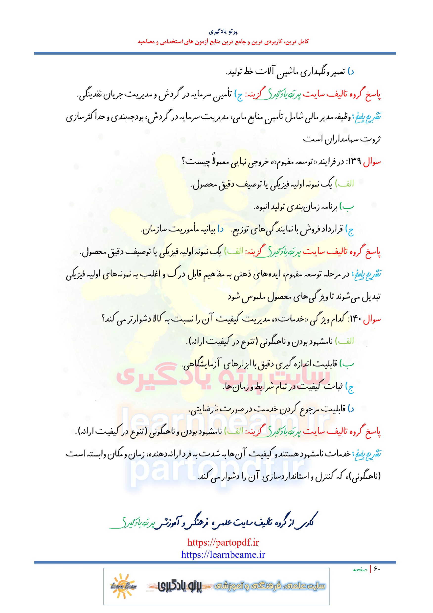 مجموعه سوالات و تست کتاب مدیریت تولید با پاسخ تشریحی
