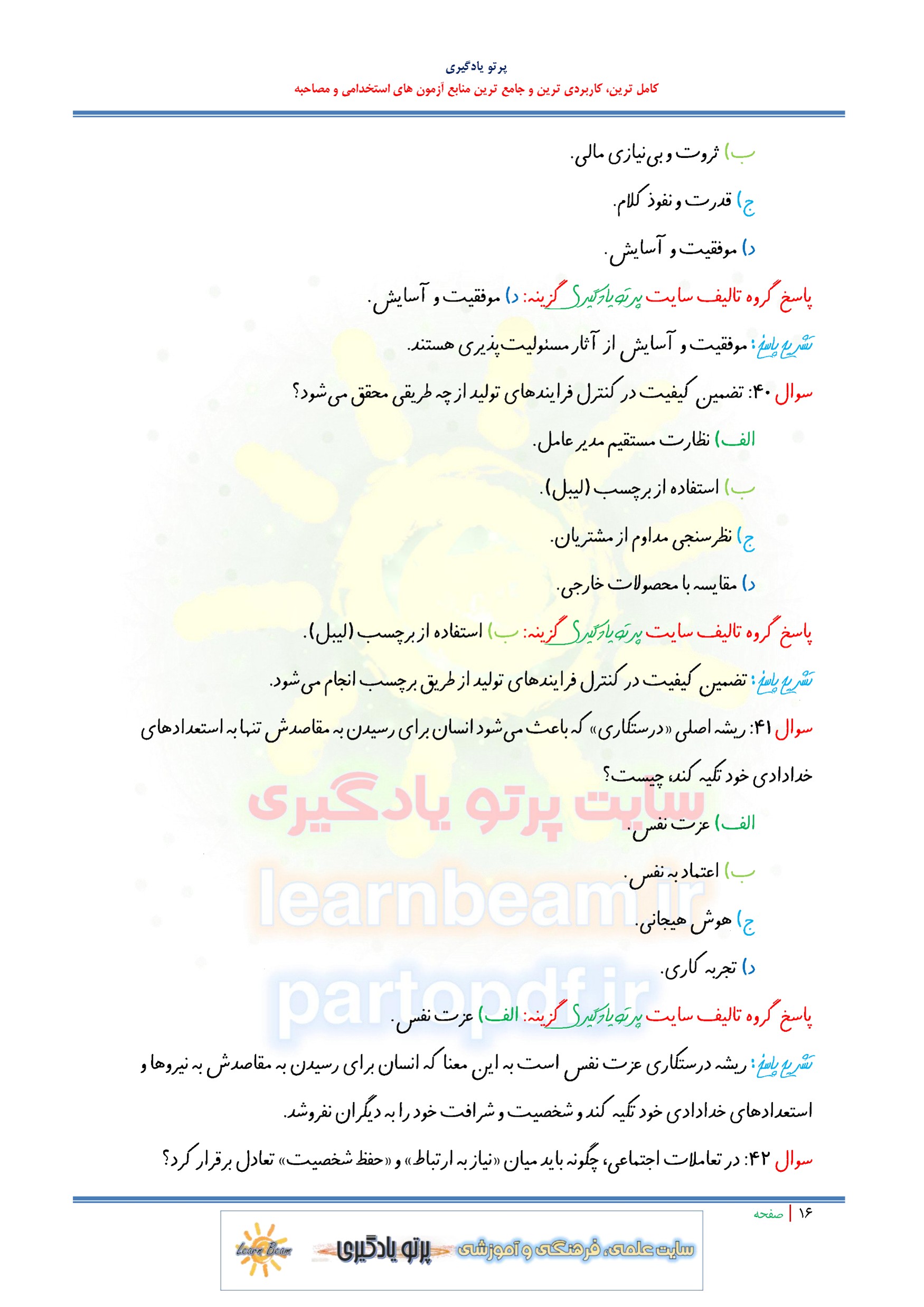 مجموعه سوالات و تست کتاب اخلاق حرفه ای با پاسخ تشریحی