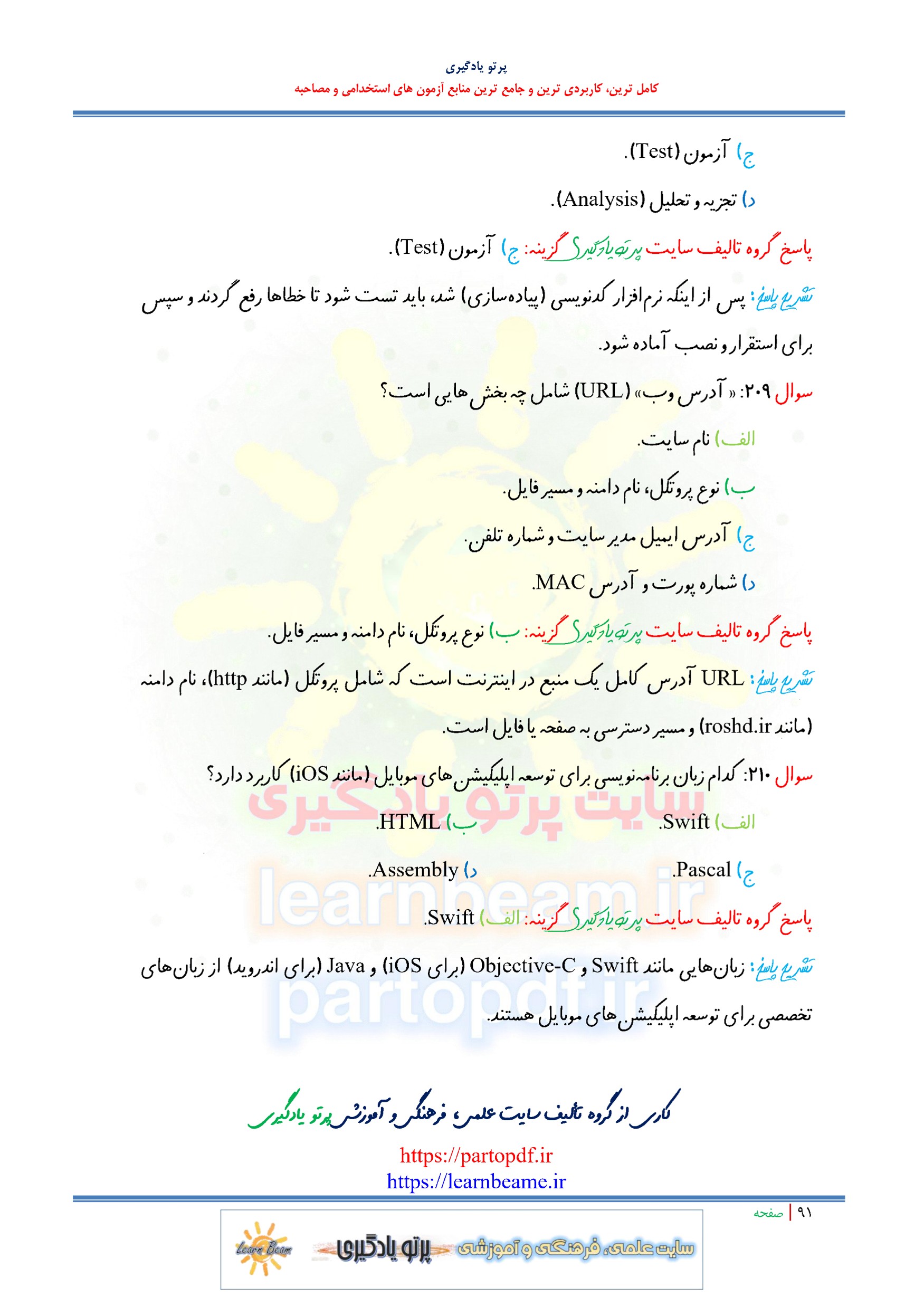 سوالات و تست کتاب مهارت های فناوری پایه. سوالات تستی کتاب مهارت های فناوری پایه شامل 210 سوال تستی در 91 صفحه با پاسخنامه در قالب فایل pdf. بهترین منبع برای آزمون های استخدامی می باشد. مجموعه سوالات تستی کتاب مهارت های فناوری پایه مطالب خوانده شده داوطلبین آزمون استخدامی را نظم بخشیده و منسجم می سازد. این مجموعه مرور سریع داوطلب را سبب می شود و آگاهی های وی را نظم بخشیده و یک آمادگی و شبیه سازی را برای جلسه آزمون به همراه دارد. مطالعه این منبع برای همه داوطلبین شرکت کننده در آزمون های استخدامی پیشنهاد می شود.