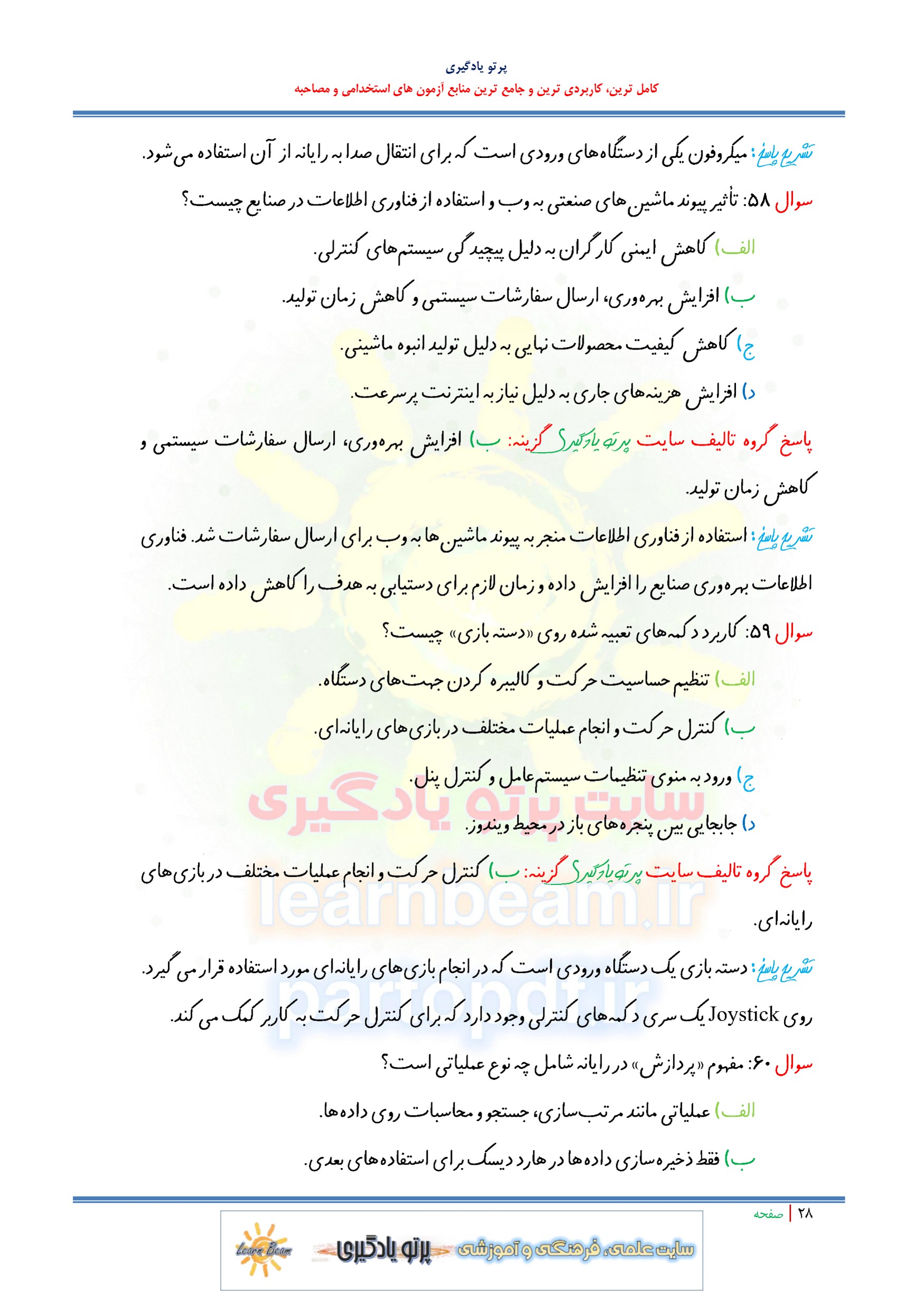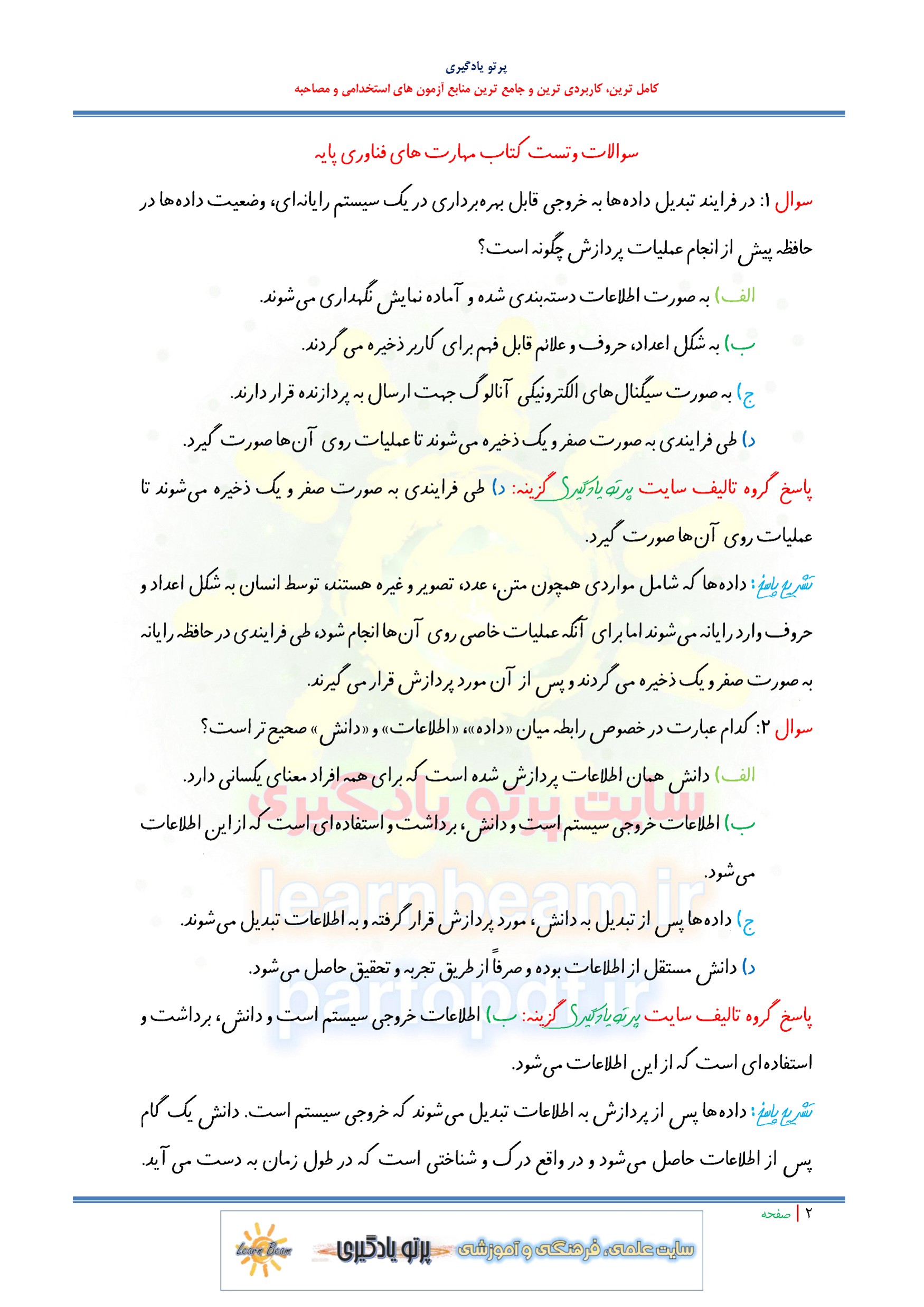 مجموعه سوالات و تست کتاب مهارت های فناوری پایه با پاسخ تشریحی