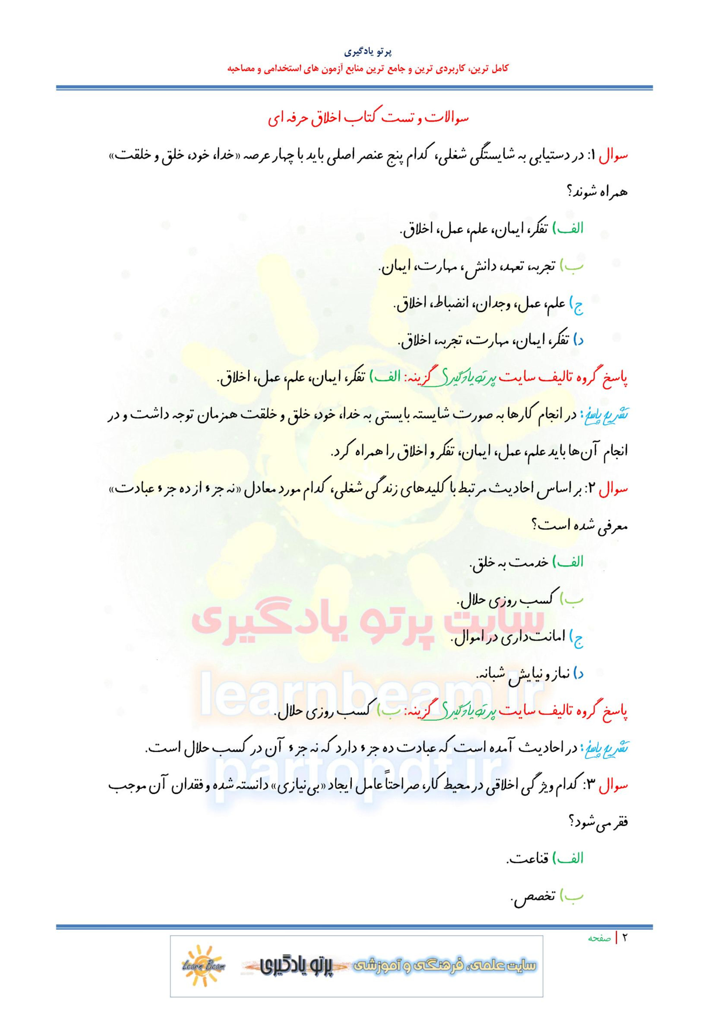 - تست کتاب اخلاق حرفه ای (130 تست در 51 صفحه) با پاسخ تشریحی