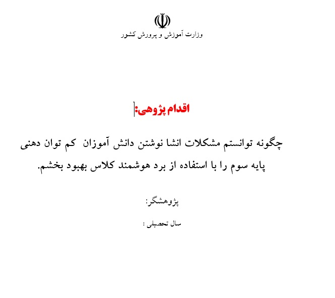 اقدام پژوهی با موضوع بندنویسی فایل بصورتword و قابل ویرایش میباشد