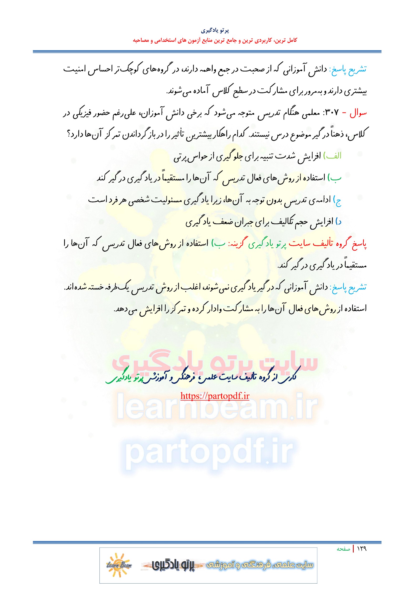 تست کتاب روش ها و فنون تدریس