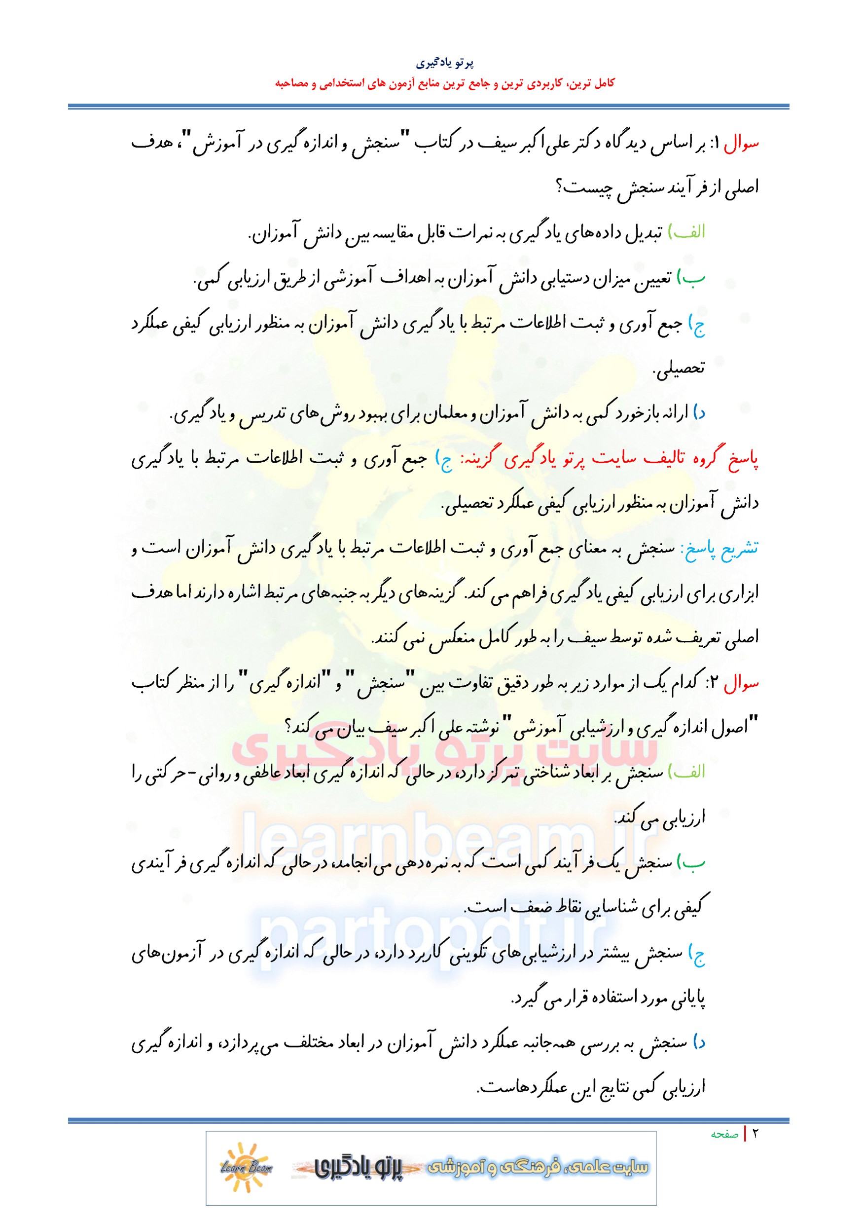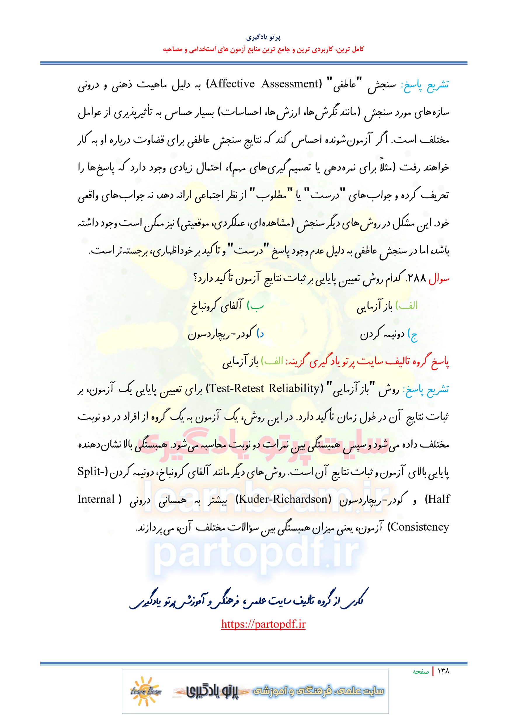 تست کتاب سنجش و اندازه گیری پیشرفت تحصیلی