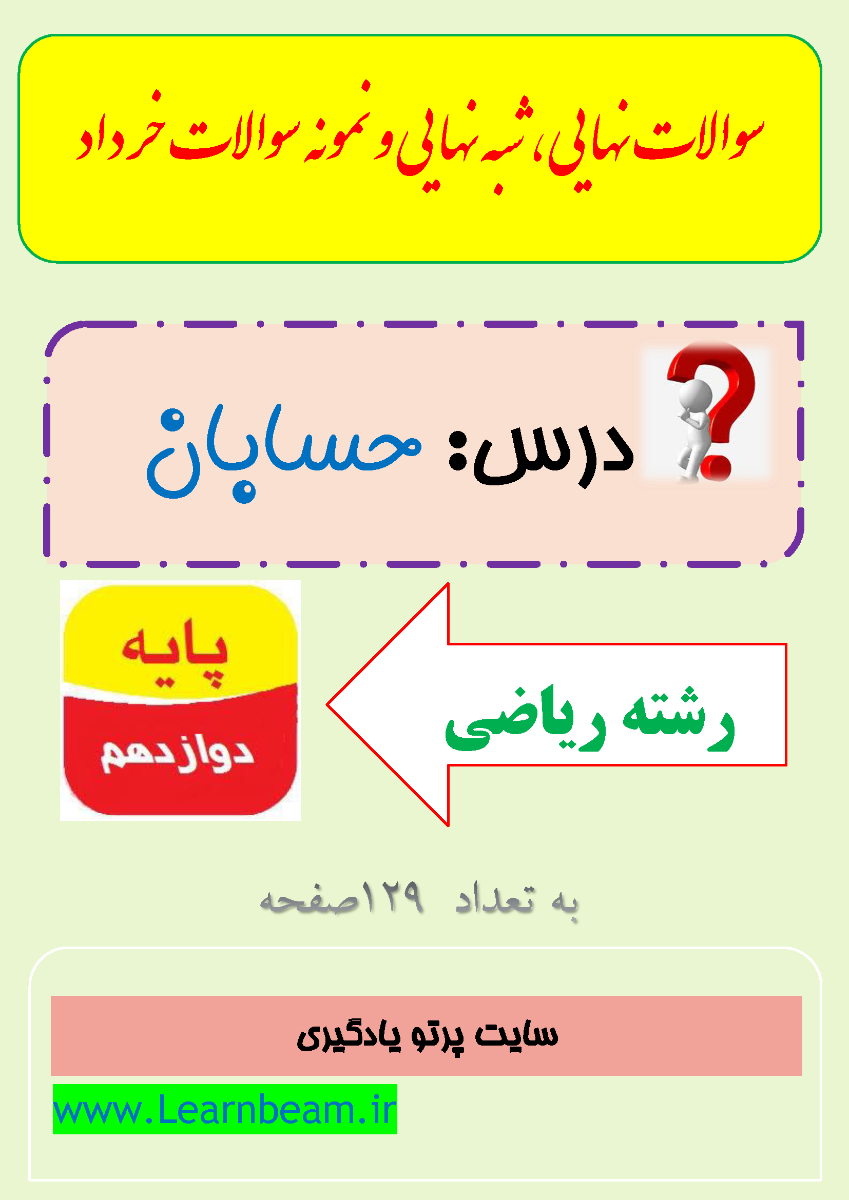 مجموعه حاضر برای درس حسابان با 32 مورد سوال نهایی و شبه نهایی و نمونه سوال در 129 صفحه برای دانش آموزان پایه دوازدهم رشته ریاضی منبعی مهم و موثربرای موفقیت در آزمون نهایی خرداد خواهد بود
