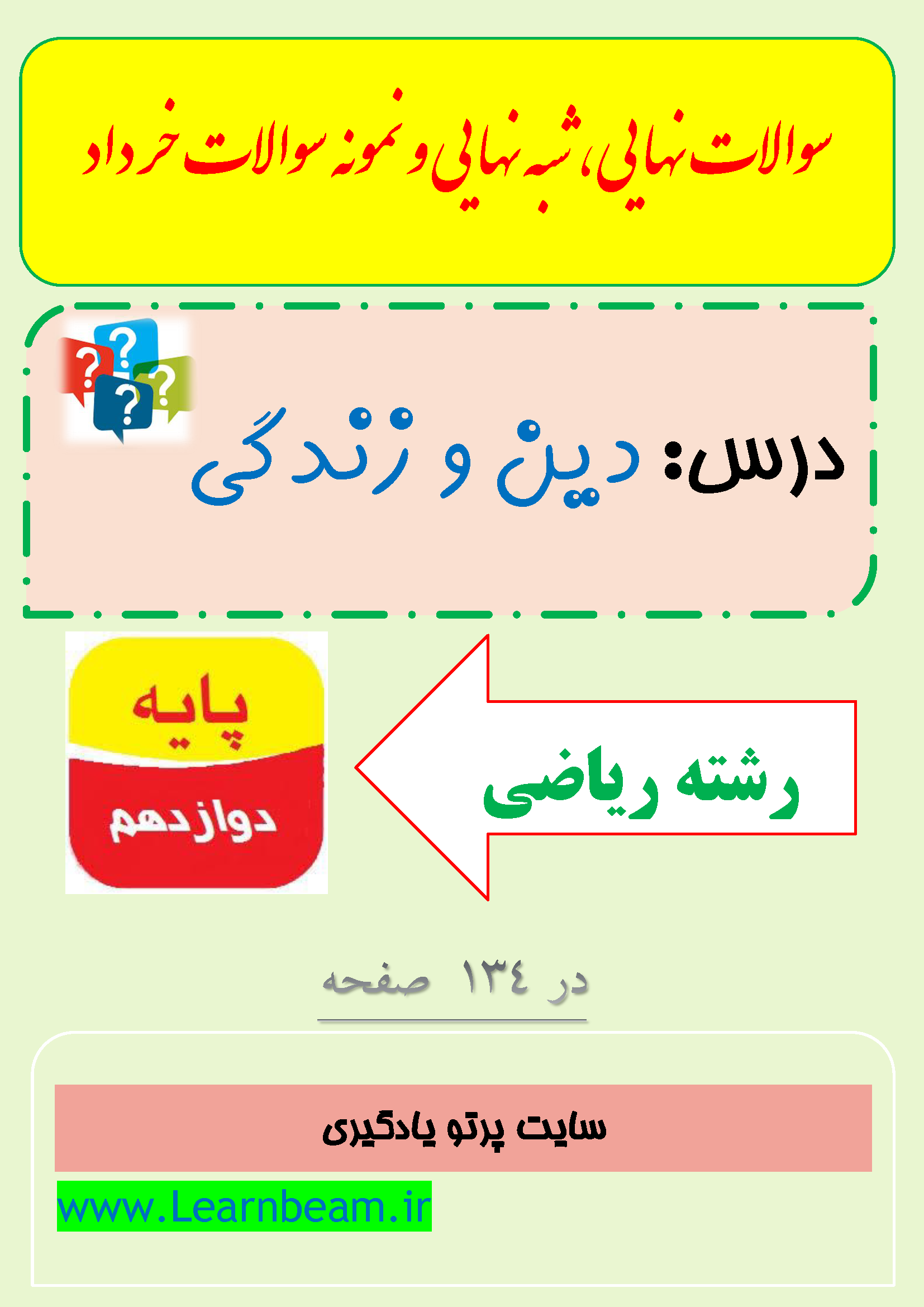 سوالات نهایی، شبه نهایی و نمونه سوالات درس دین و زندگی پایه دوازدهم همراه پاسخنامه رشته ریاضی در 134 صفحه