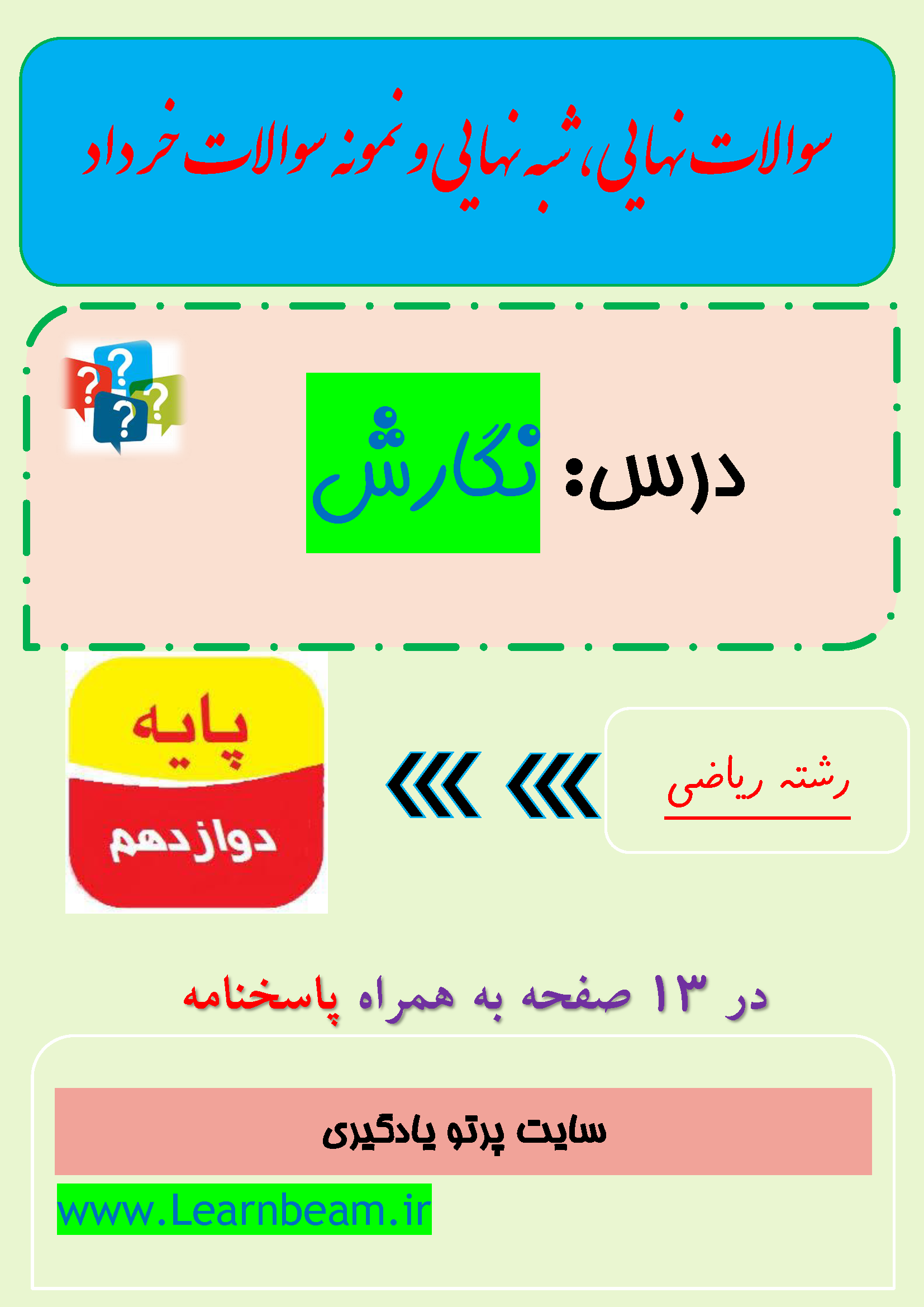 سوالات نهایی، شبه نهایی و نمونه سوالات درس نگارش پایه دوازدهم رشته ریاضی همراه پاسخنامه در 13 صفحه