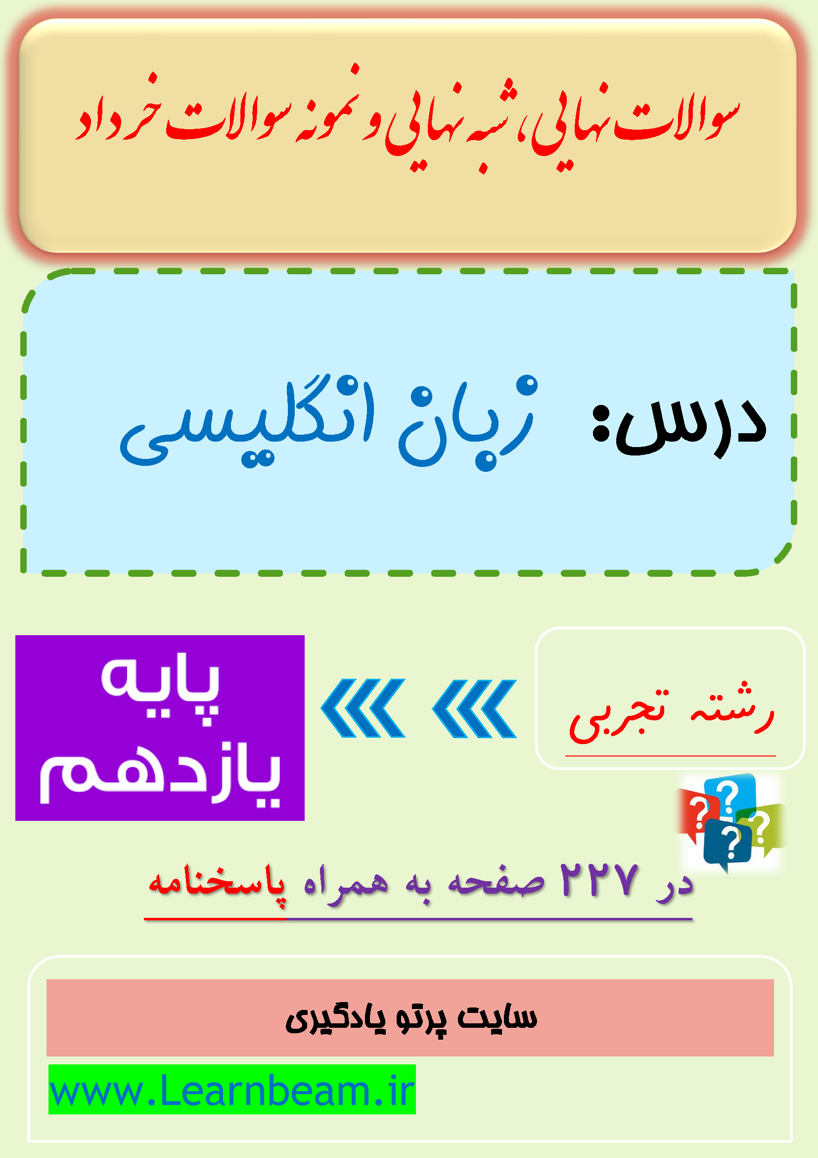 سوالات نهایی، شبه نهایی و نمونه سوالات درس زبان انگلیسی پایه یازدهم تجربی در 222 صفحه همراه پاسخنامه