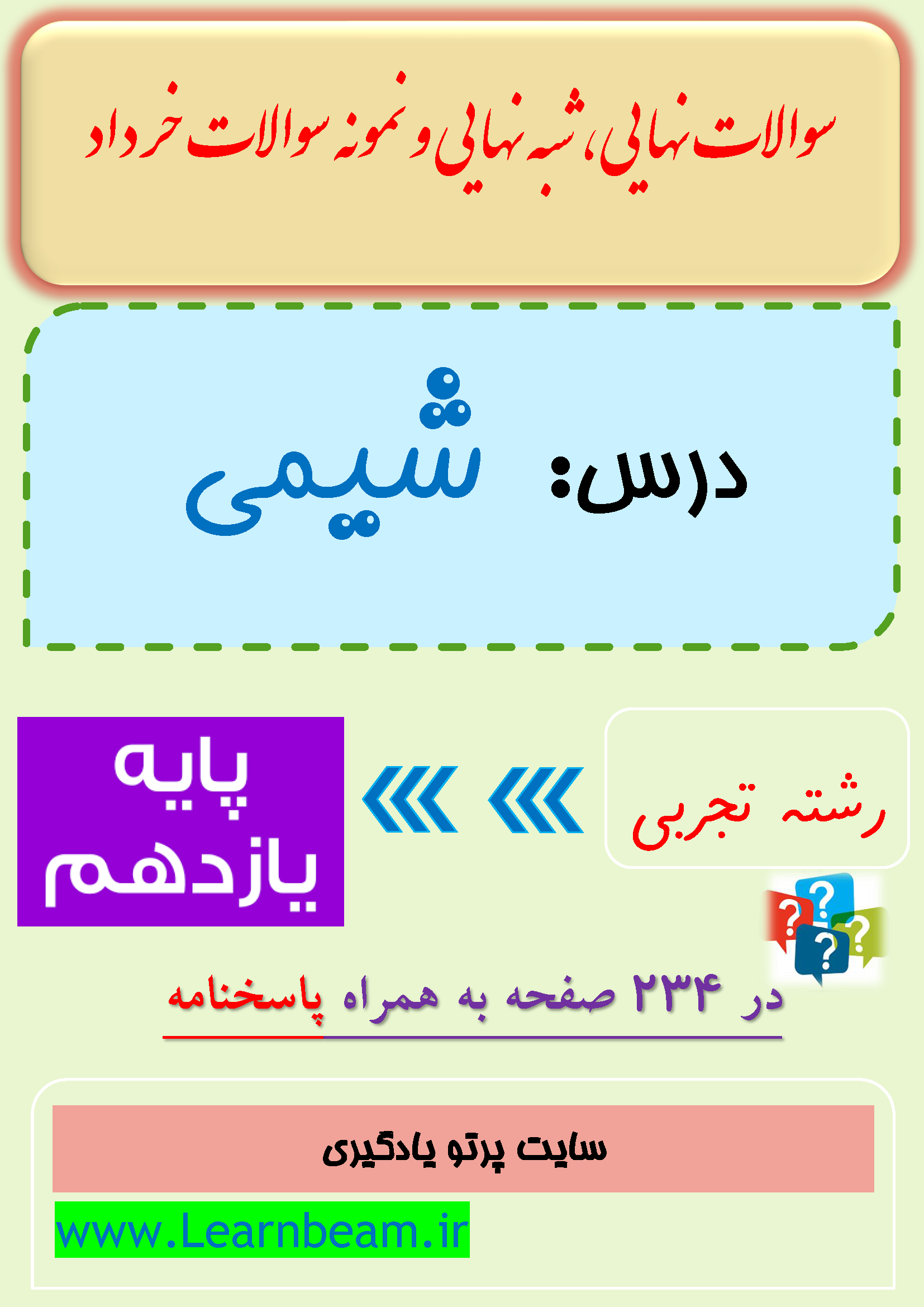 سوالات نهایی، شبه نهایی و نمونه سوالات درس شیمی پایه یازدهم تجربی در 234 صفحه همراه پاسخنامه