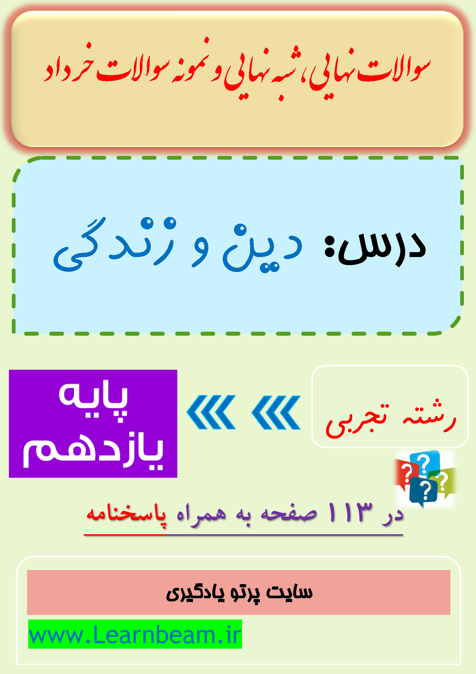 سوالات نهایی، شبه نهایی و نمونه سوالات درس دین و زندگی پایه یازدهم تجربی در 113 صفحه