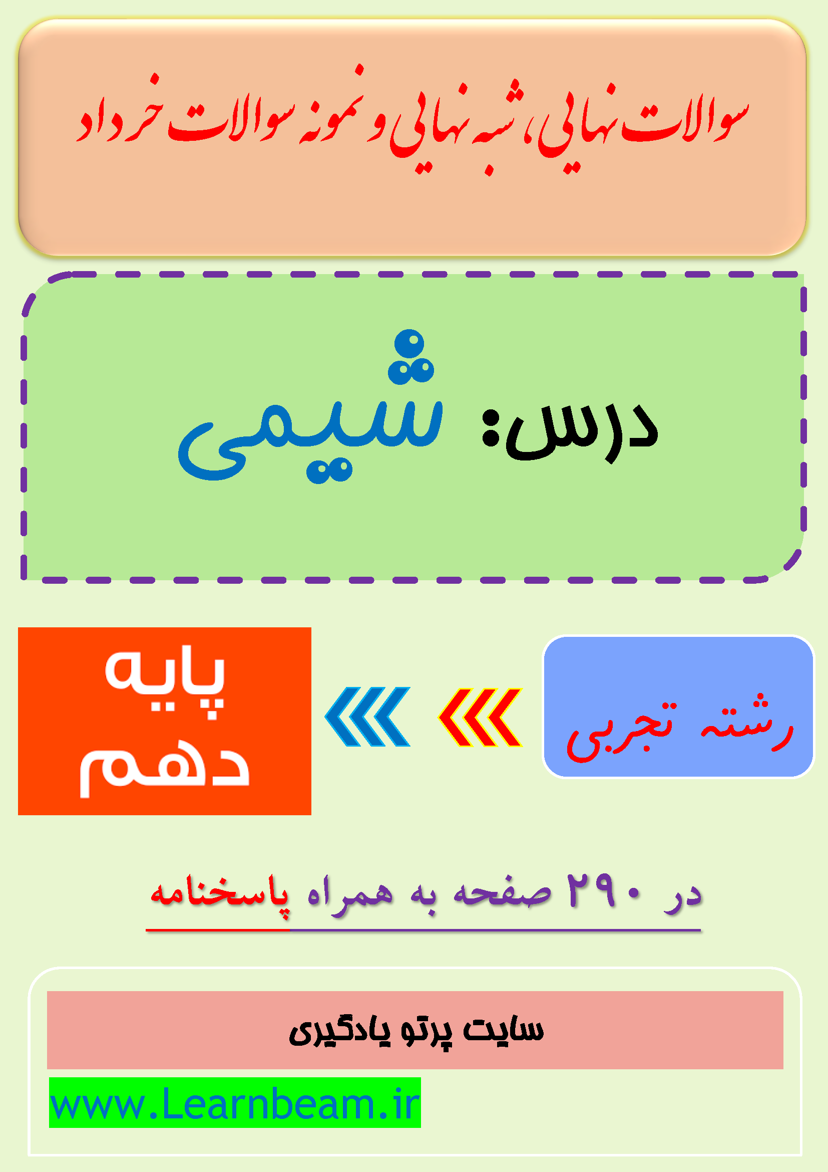 سوالات نهایی، شبه نهایی و نمونه سوالات درس شیمی پایه دهم تجربی در 200 صفحه