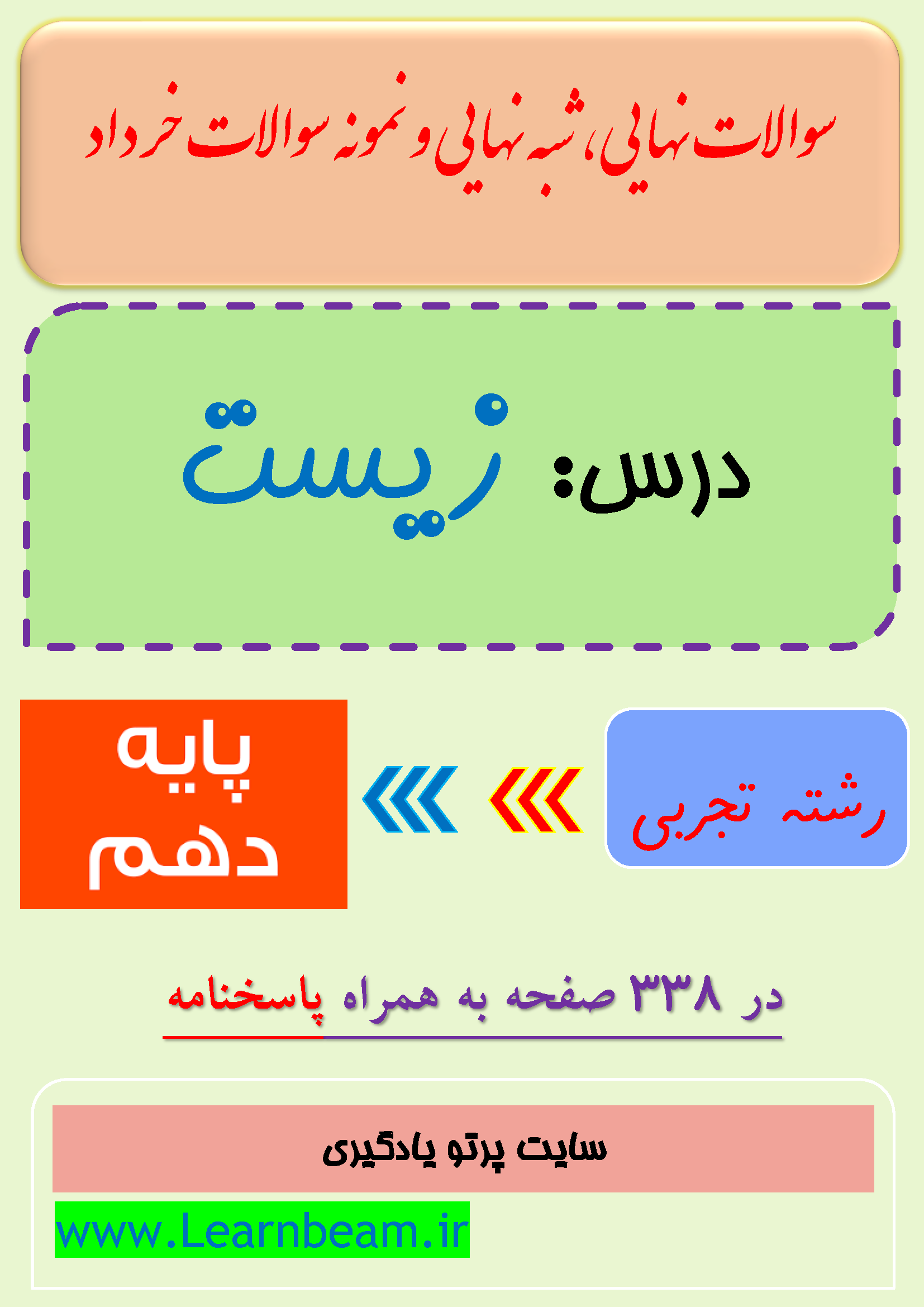 سوالات نهایی، شبه نهایی و نمونه سوالات درس زیست پایه دهم تجربی در 340 صفحه