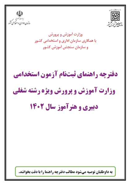 به اطلاع متقاضیان ثبتنام در آزمون استخدامی وزارت آموزش و پرورش ویژه رشتههای شغلی دبیری و هنرآموز سال 1402 میرساند که ثبتنام برای شرکت در این آزمون از روز شنبه مورخ ۱۴۰۲/۳/۲۷ آغاز و تا روز چهارشنبه مورخ ۱۴۰۲/۳/۳۱ ادامه خواهد یافت. دفترچه راهنمای ثبتنام در آزمون حاوی شرایط و ضوابط، اطلاعات شغل محلها همزمان با شروع ثبتنام از طریق درگاه اطلاعرسانی این سازمان قابل دسترس خواهد بود.با توجه به محدودیت زمانی به متقاضیان توصیه میشود در مهلت اعلام شده برای شرکت در آزمون مذکور به درگاه اطلاعرسانی این سازمان به نشانی: www.sanjesh.org مراجعه و برای ثبتنام اقدام نمایند.آزمون فوق در روز پنجشنبه مورخ ۱۴۰۲/۵/۱۲ برگزار خواهد شد.