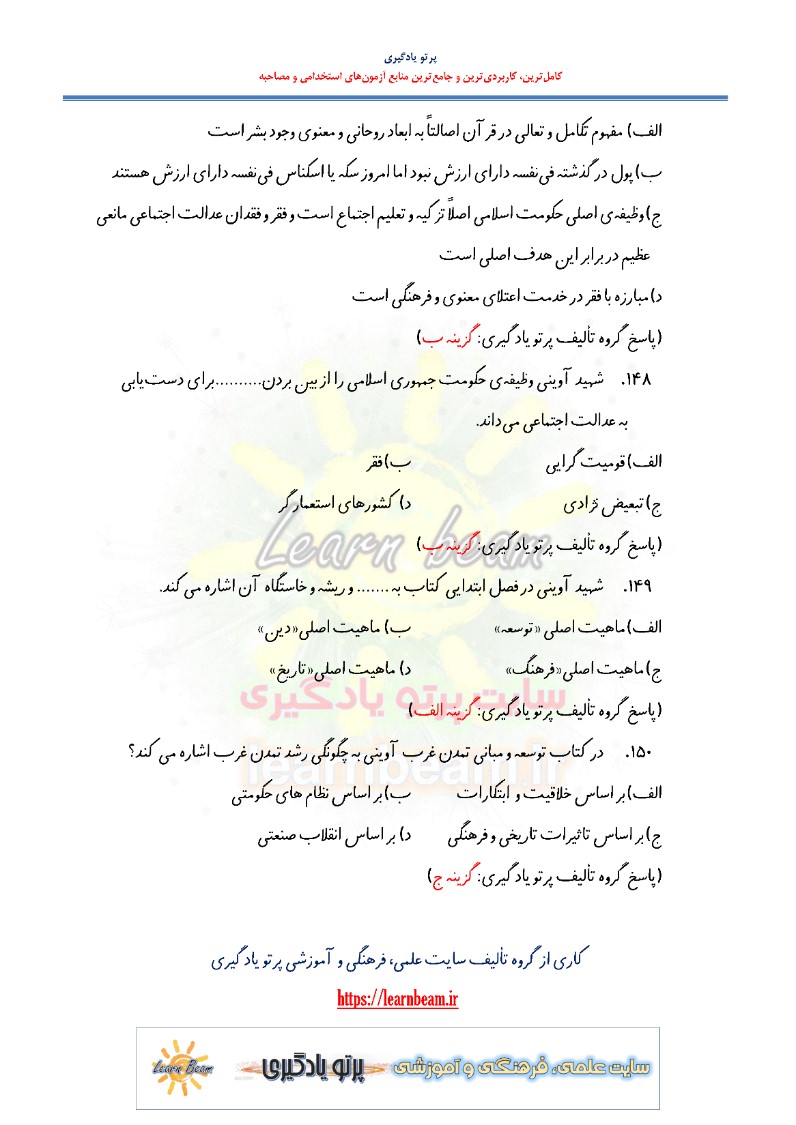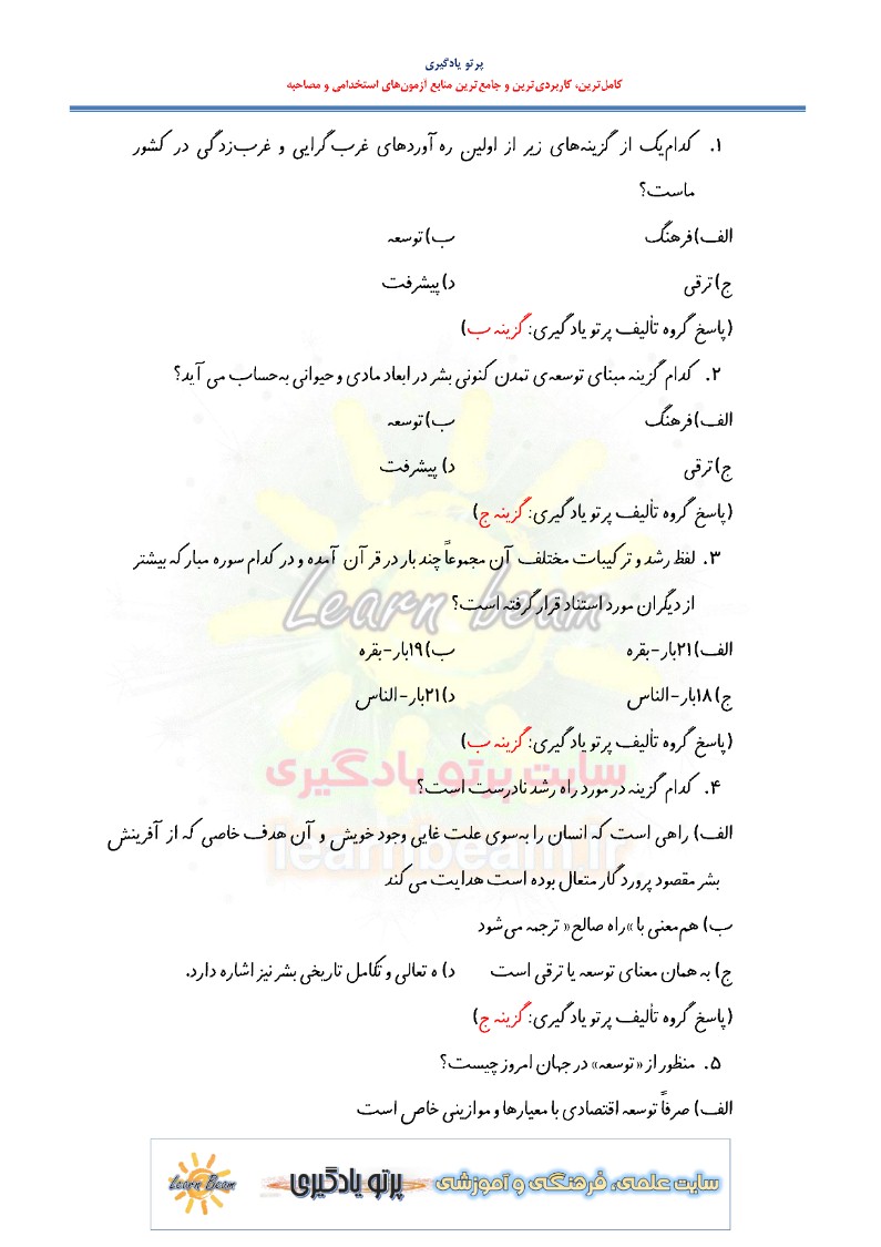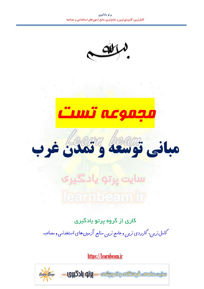 سوالات تستی کتاب توسعه و مبانی تمدن غرب در 150 سوال تستی در 35 صفحه در قالب فایل pdf همراه با پاسخنامه طراحی و تدوین گردیده است. این مجموعه جهت مرور سریع آزمون استخدامی آموزش و پرورش و تمامی آزمون های استخدامی طراحی و تدوین شده است.