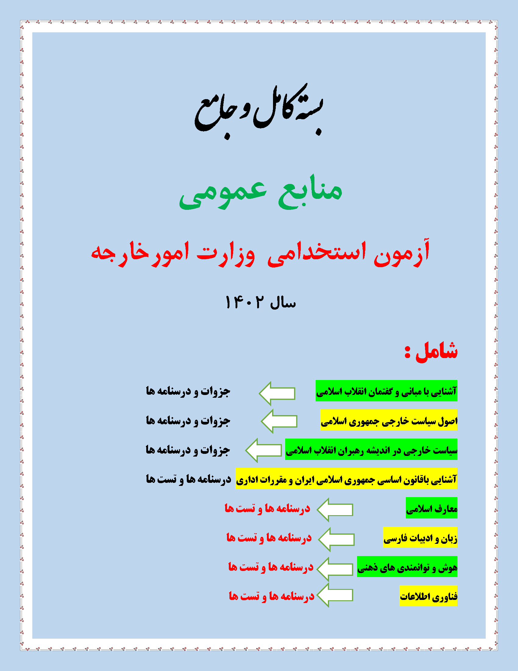 بسته منابع عمومی آزمون وزارت خارجه شامل :