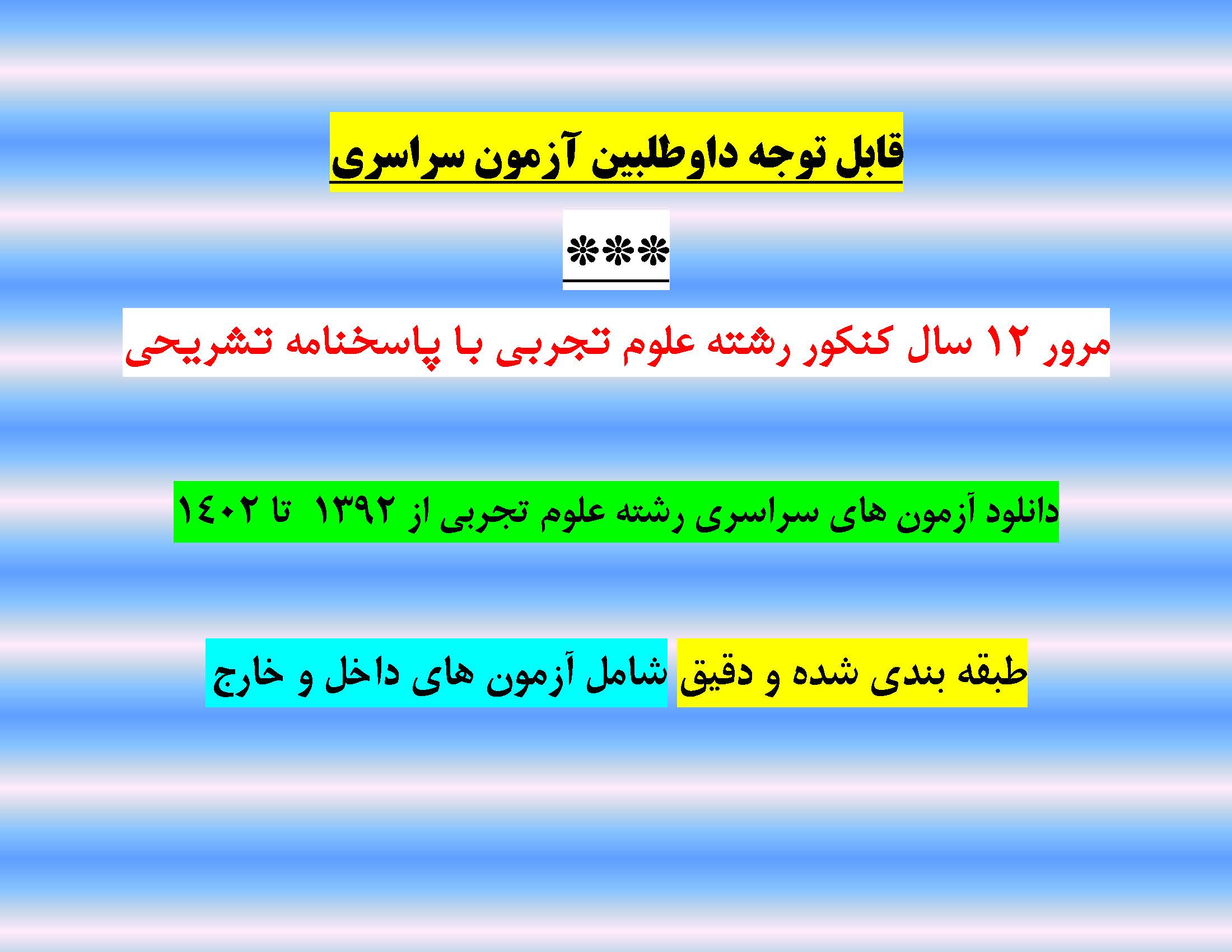 مجموعه سوالات کنکور علوم تجربی از سال 92 تا 1402 . مرور 12 سال کنکور رشته علوم تجربی با پاسخنامه تشریحی