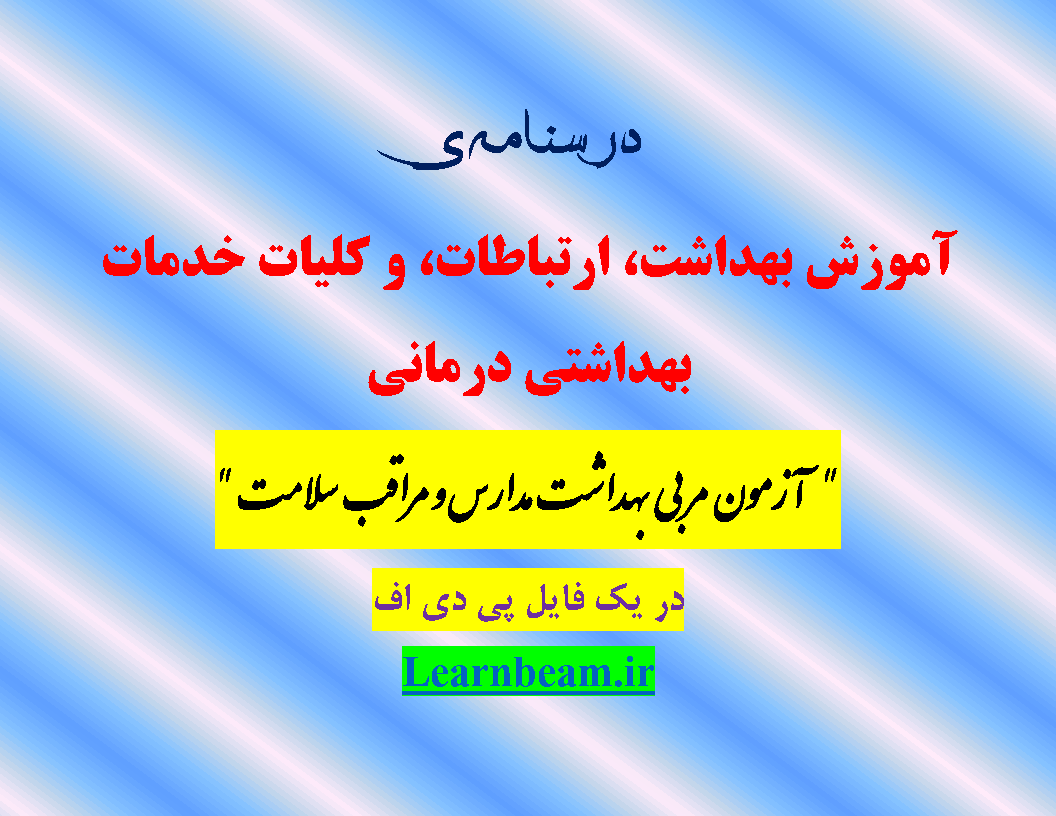 درسنامه ی جزوه آموزش بهداشت، ارتباطات، و کلیات خدمات بهداشتی درمانی مطابق با دفترچه راهنمای ثبت نام آزمون استخدام مشاغل آموزگار - دبیر و هنرآموز سال 1403 در 108 صفحه پی دی اف ویژه آزمون استخدامی آموزش و پرورش مربی بهداشت و مراقب سلامت تهیه و تنظیم شده است. درسنامه ی جزوه آموزش بهداشت، ارتباطات، و کلیات خدمات بهداشتی درمانی با کیفیتی مناسب شرکت کنندگان در آزمون مربی بهداشت و مراقب سلامت با مفاهیم و اصول بهداشت و خدمات درمانی آشنا ساخته و آنان را برای آزمون استخدامی آموزش و پرورش مربی بهداشت و مراقب سلامت آماده تر می سازد.