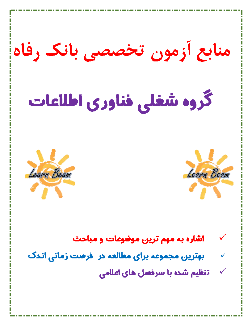 منابع آزمون تخصصی بانک رفاه کارگران ویژه گروه شغلی فناوری اطلاعات (نرم افزار و علوم داده) به صورت فایل زیپ شده در قالب پی دی اف.ویژه آزمون استخدامی بانک رفاه کارگران. بصورت جامع و کامل در یک مجموعه طبق دفترچه ی راهنمای ثبت نام.شرکت کنندگان در آزمون استخدامی بانک رفاه در گروه شغلی فناوری اطلاعات و نرم افزار و علوم داده می توانند با مطالعه این مجموعه در مسیر موفقیت قدم بگذارند.