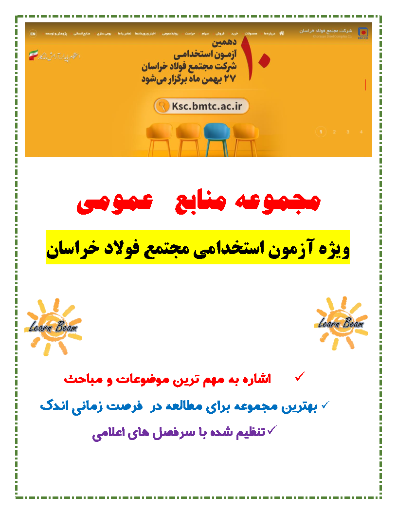 دانلود منابع عمومی آزمون استخدامی مجتمع فولاد خراسان در زبان انگلیسی توانایی ذهنی و استدلال دانش رایانه و تجسم و هوش به این صورت می باشد: