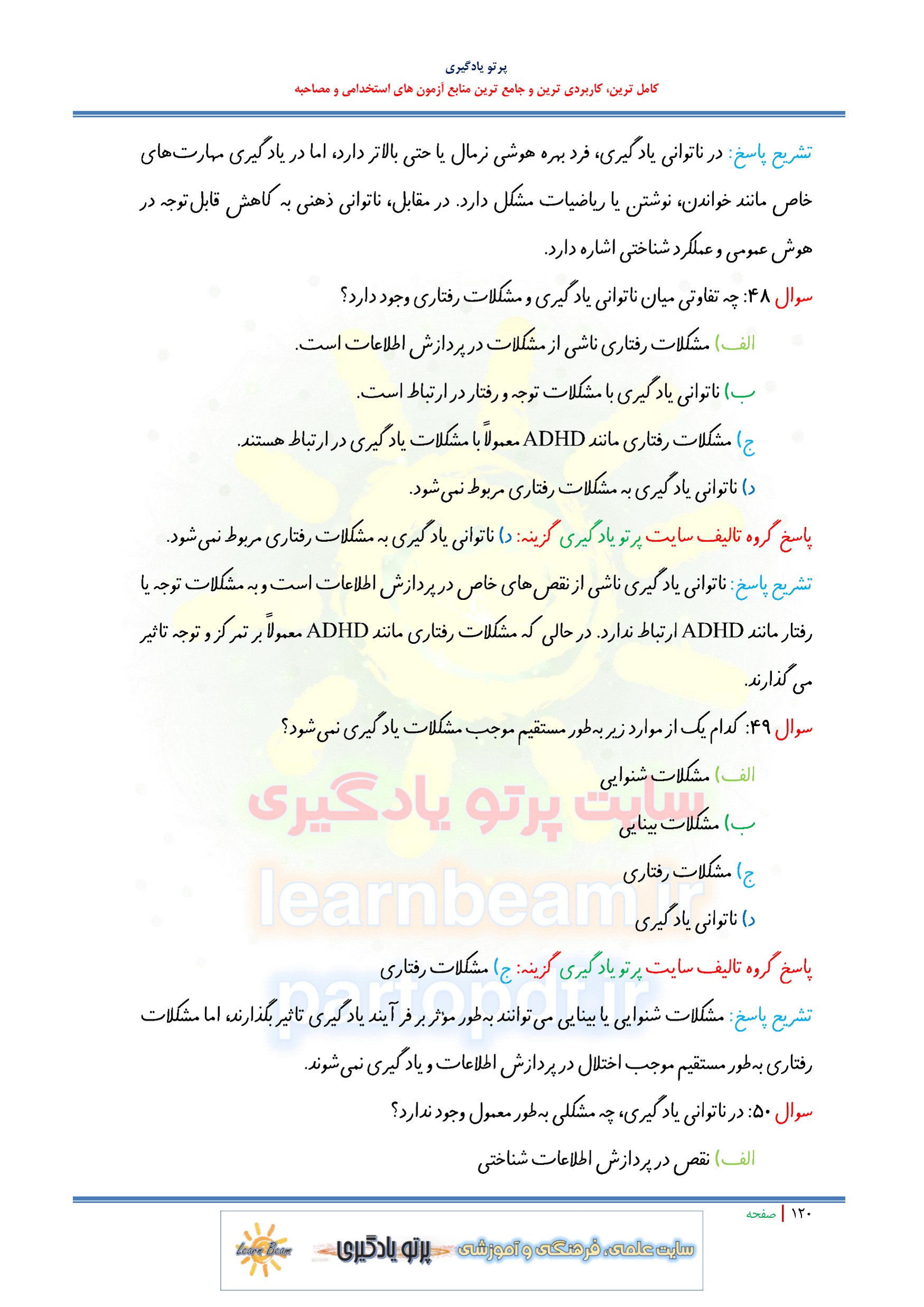 سوالات تستی روان شناسی رشد و اختلالات یادگیری با پاسخ تشریحی