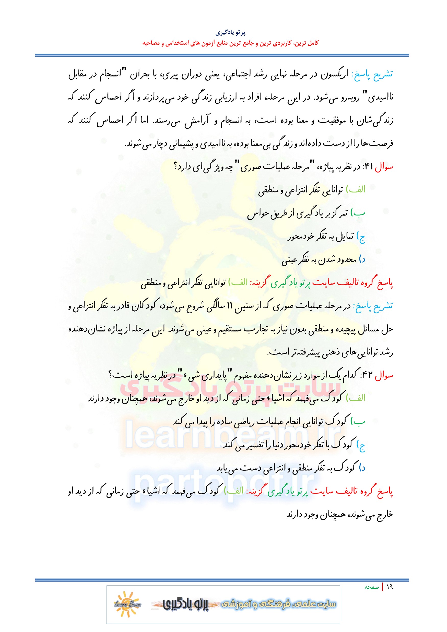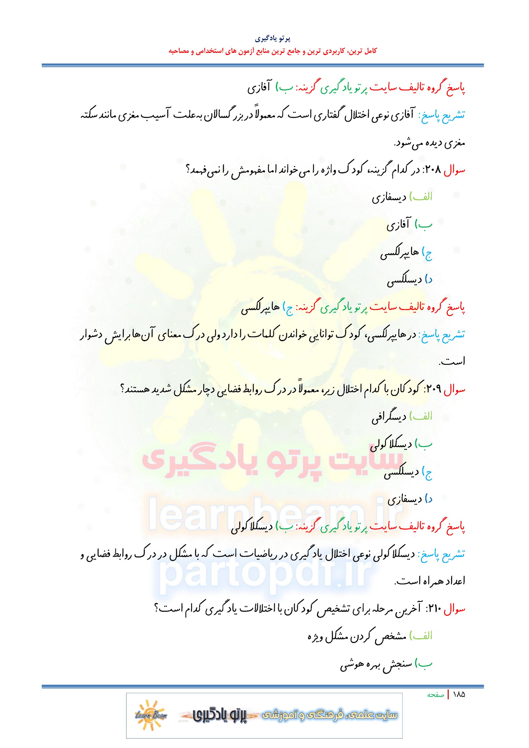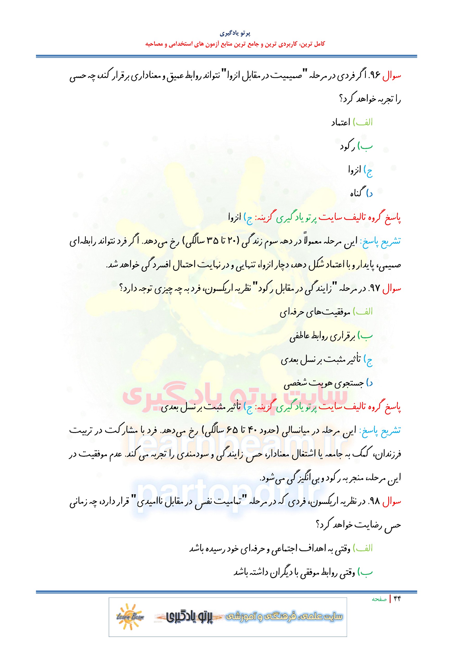 سوالات تستی روانشناسی رشد و سوالات تستی اختلال یادگیری منبع جدید آزمون استخدامی آموزش و پرورش در 216 صفحه و 519 تست در قالب فایل pdf با پاسخنامه شامل: