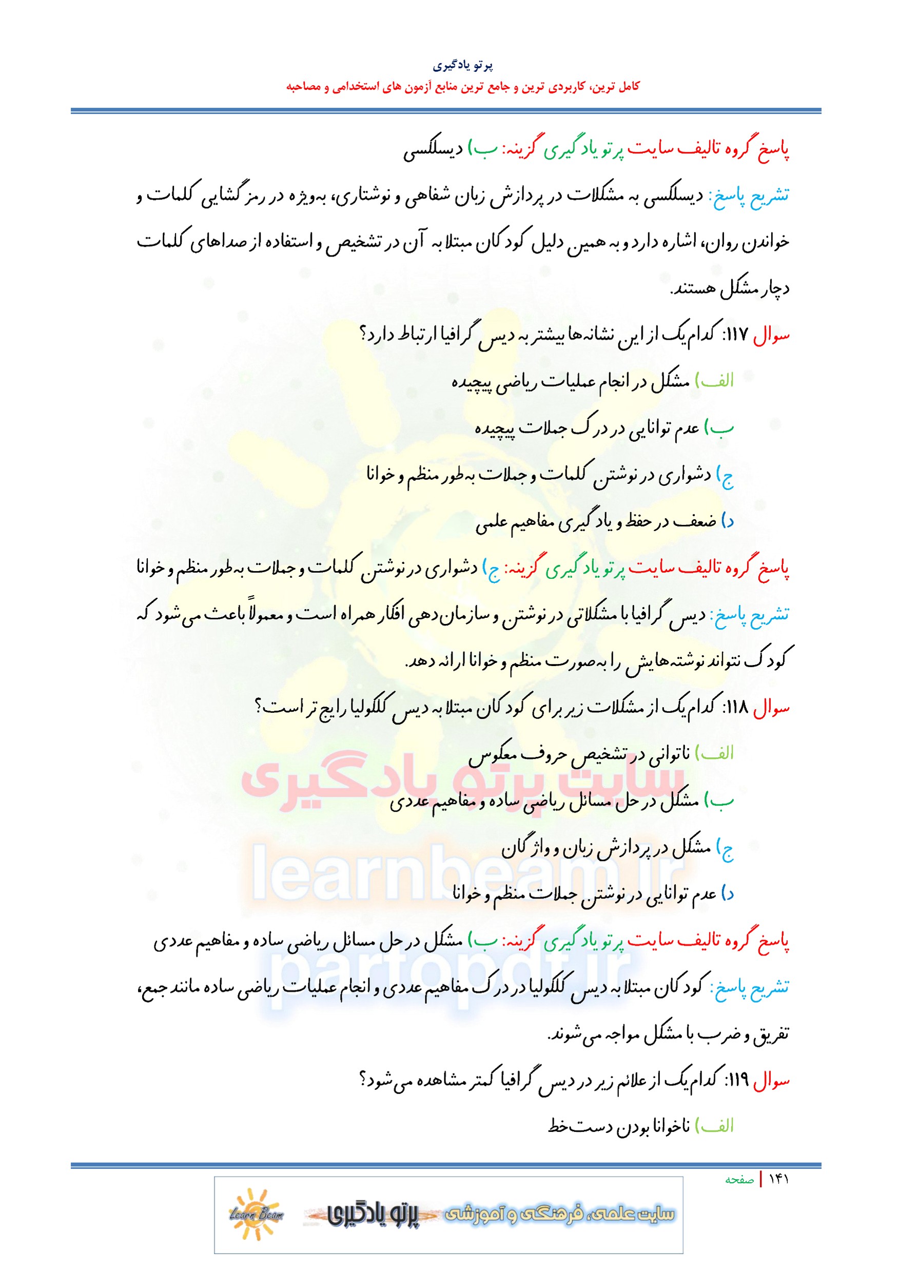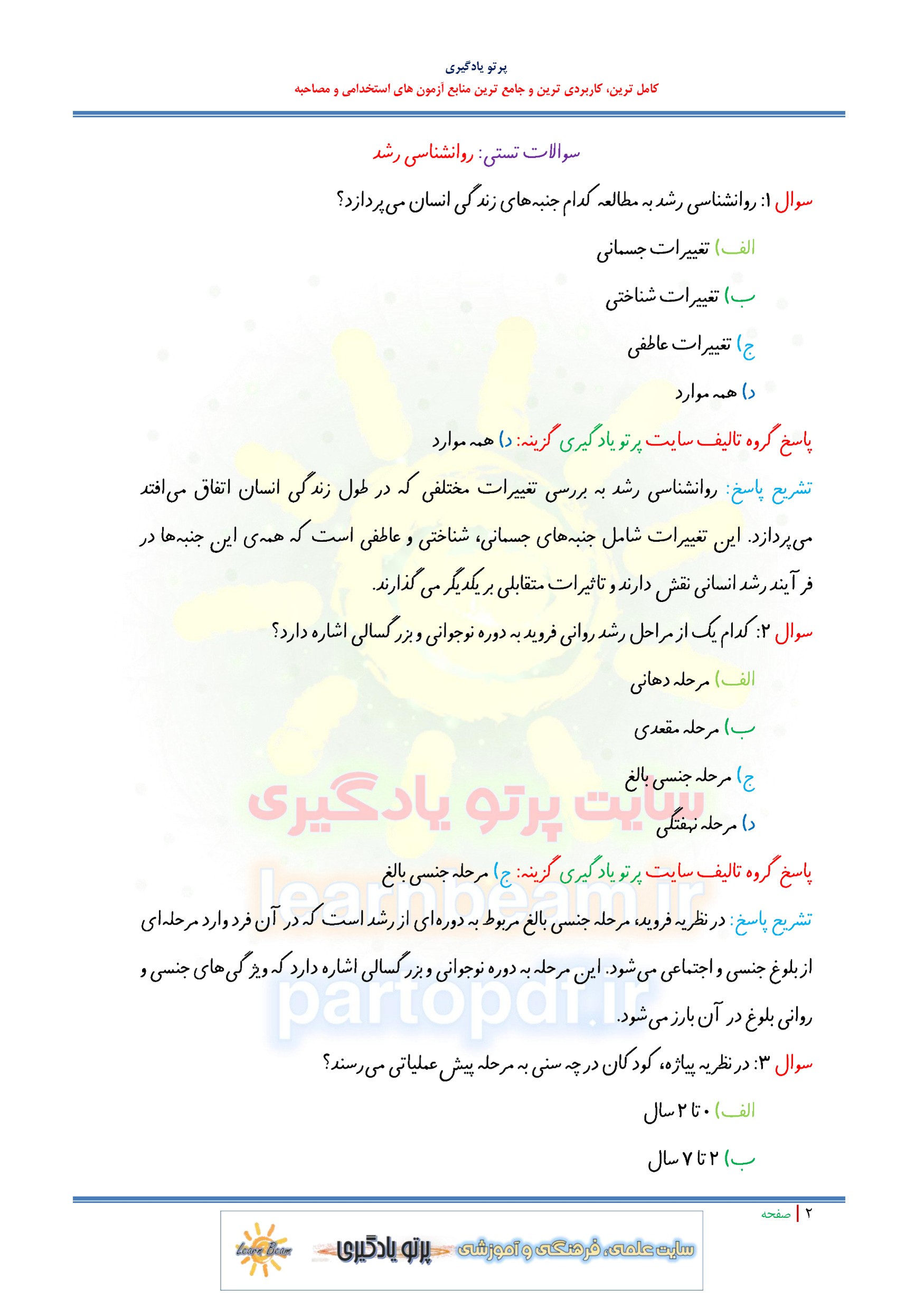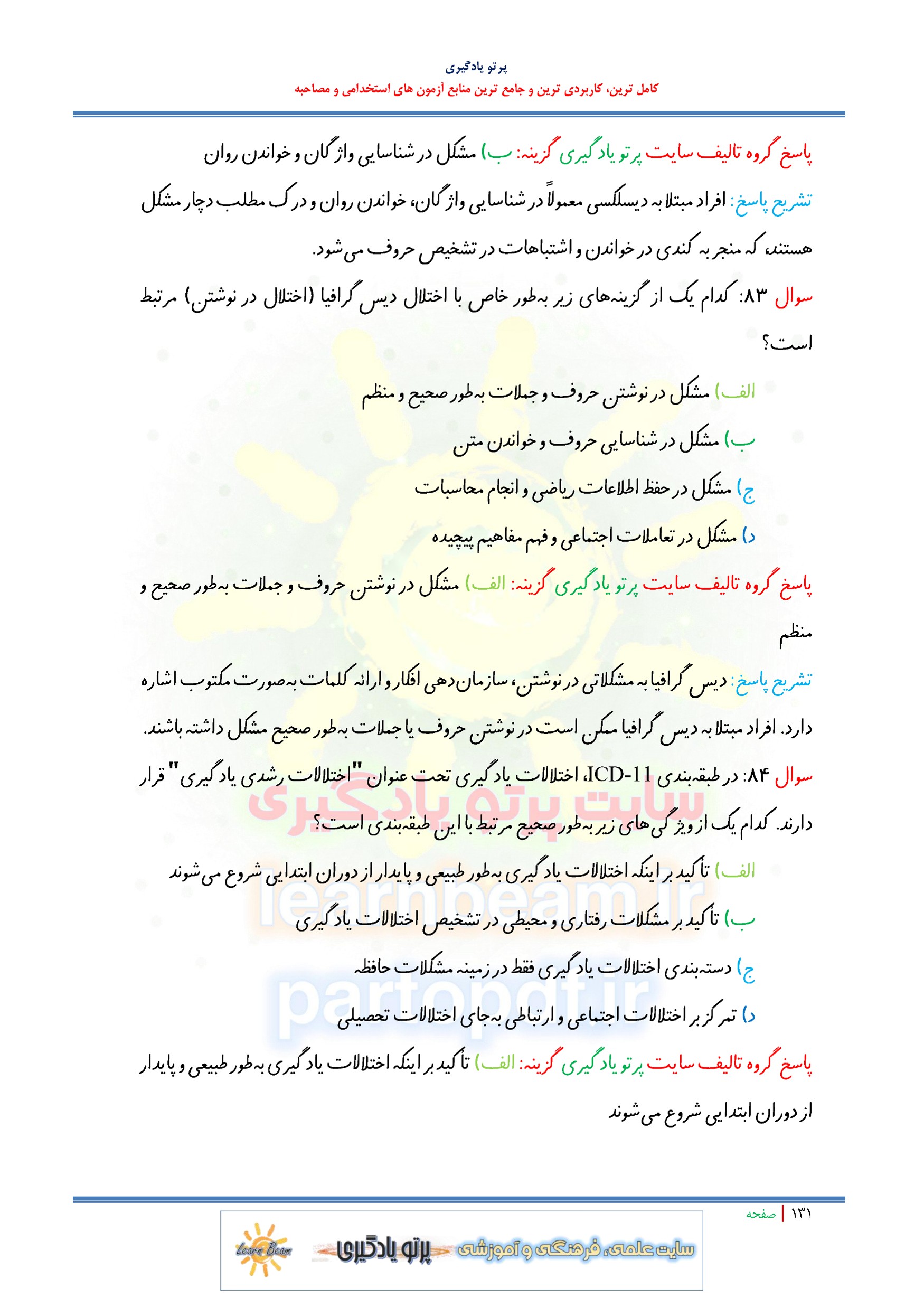 سوالات تستی روانشناسی رشد و سوالات تستی اختلال یادگیری منبع جدید آزمون استخدامی آموزش و پرورش در 216 صفحه و 519 تست در قالب فایل pdf با پاسخنامه شامل: