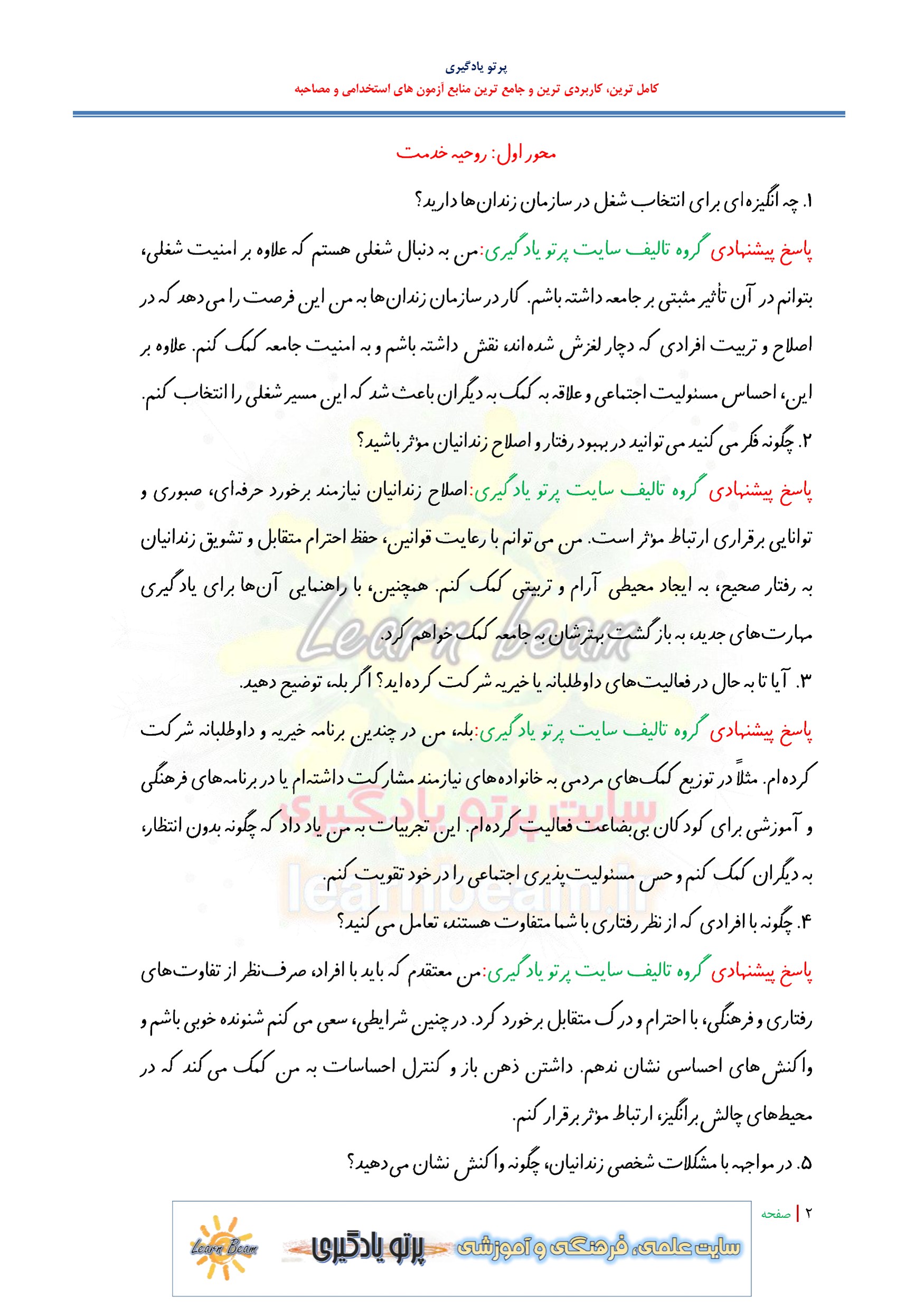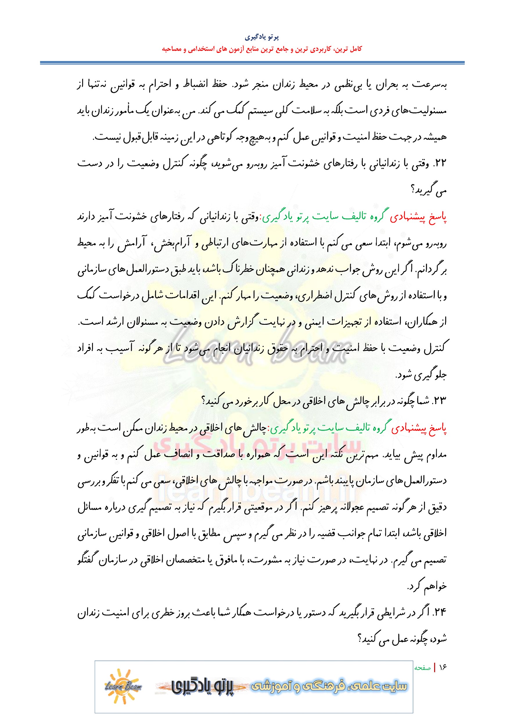 سوالات مصاحبه سازمان زندان ها و اقدامات تامینی و تربیتی مطابق با دفترچه راهنمای ثبت نام