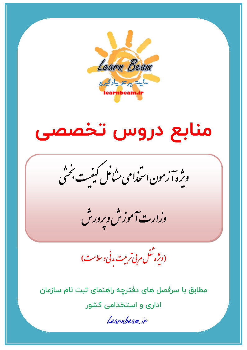 منابع تخصصی آزمون استخدامی مشاغل کیفیت بخشی وزارت آموزش و پرورش سال 1403 ویژه شغل مربی تربیت بدنی و سلامت در قالب فایل pdf در یک مجموعه (طبق توضیحات شرح) به صورت فشرده جهت مطالعه، آمادگی و جمع بندی مطالب ذهنی داوطلبین شرکت کننده در آزمون استخدامی مربی پرورشی در آزمون مشاغل کیفیت بخشی وزارت آموزش و پرورش سال 1403